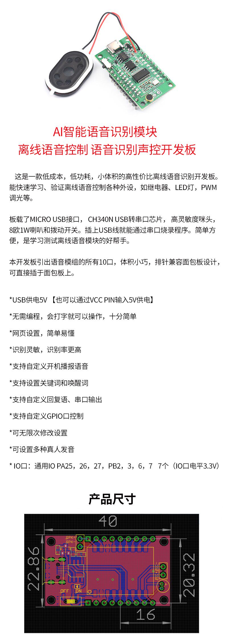 ASR01 Интеллектуальный модуль распознавания голоса AI Офлайн распознавание ASR02 Пользовательский переключатель входа в слова намного превышает LD3320