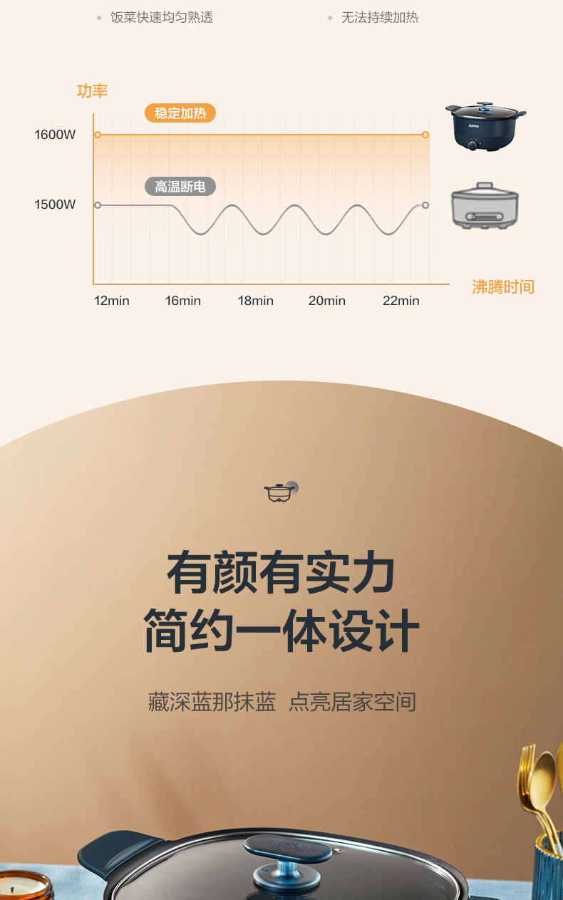Supor Electric Hot Hot Pot. Домохозяйство многофункциональное интегрированное углубление больших мощностей.