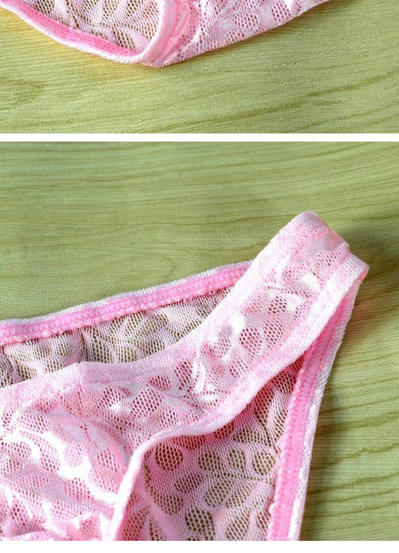 Розовое нижнее белье подходит для мужчин и женщин, кружевные летние тонкие трусы, в обтяжку