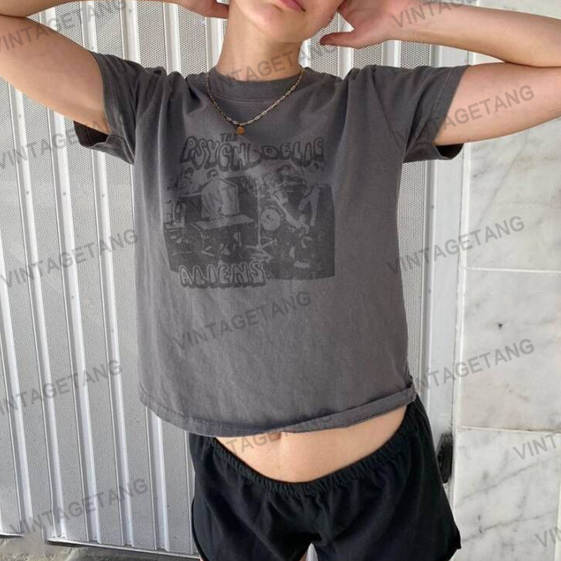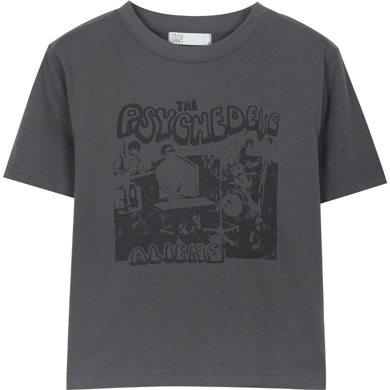 Vintagetang American Retro BM Grey Personality Printing Short Shop Short -sleed