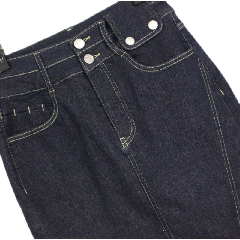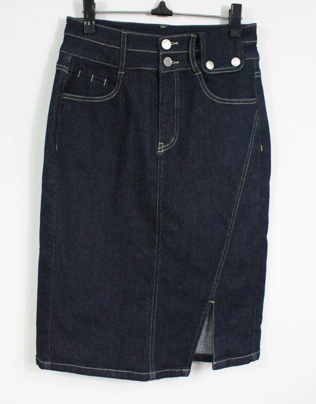 Женская утепленная джинсовая темно-синяя цветная юбка, с акцентом на бедрах