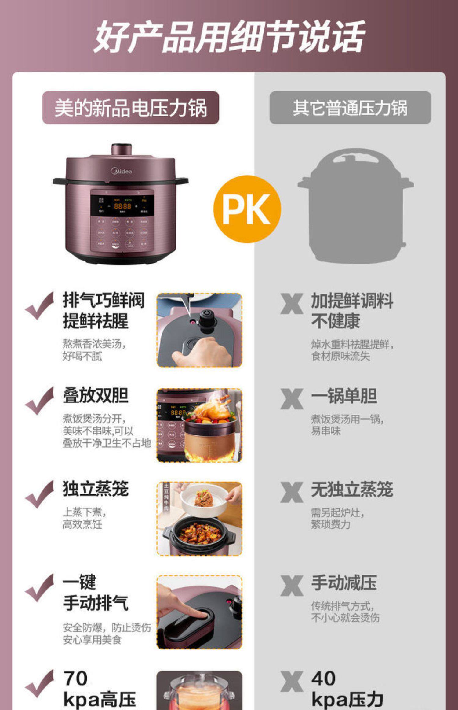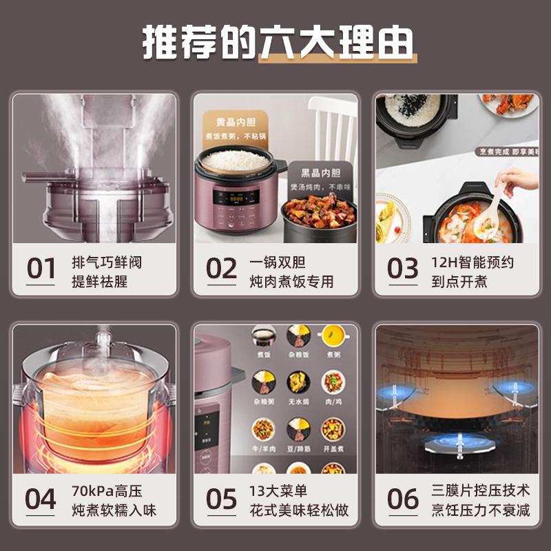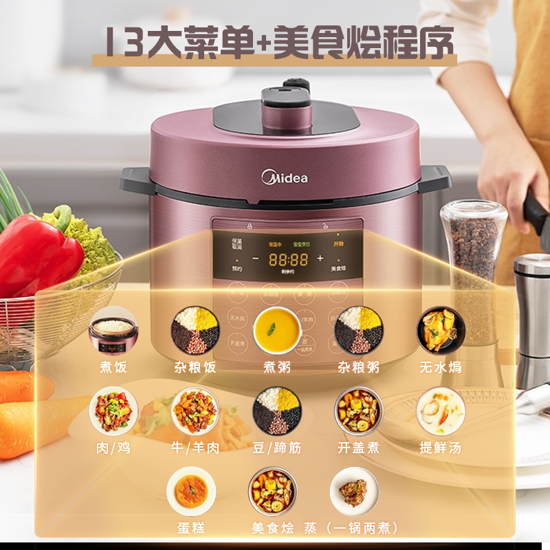 Электрическая скороварка Midea Home 6L Double Bile Многофункциональная плита с высоким давлением Полностью автоматическая умная рисоватка подлинная 5-6 человек