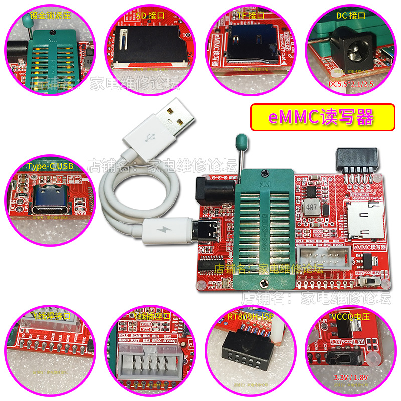 EMMC Reader ISP Flying Line Online Rt809h Seat Transfer SD_TF Navigation BGA Font Mirror USB