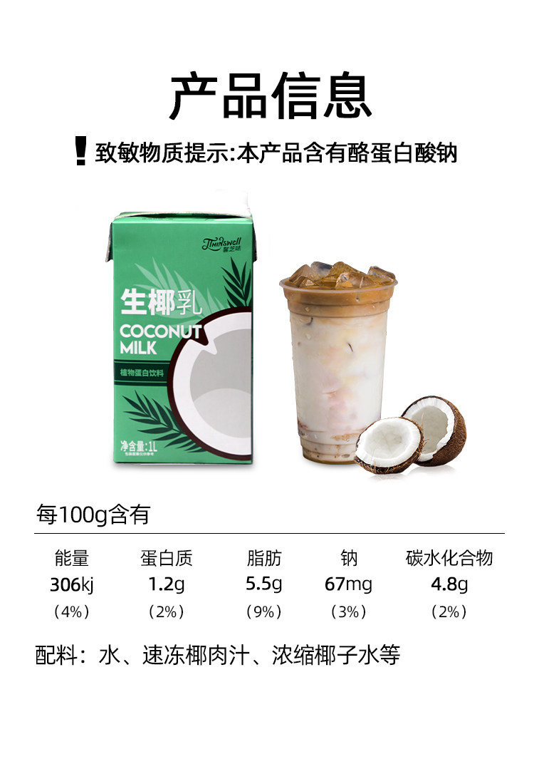 Дексин толстая кокосовая грудь 1 л сырой кокосовой кокосовой кокосовый кокосовый кофе Специальное кокосовое молоко кокосовое молоко кокосовое сок