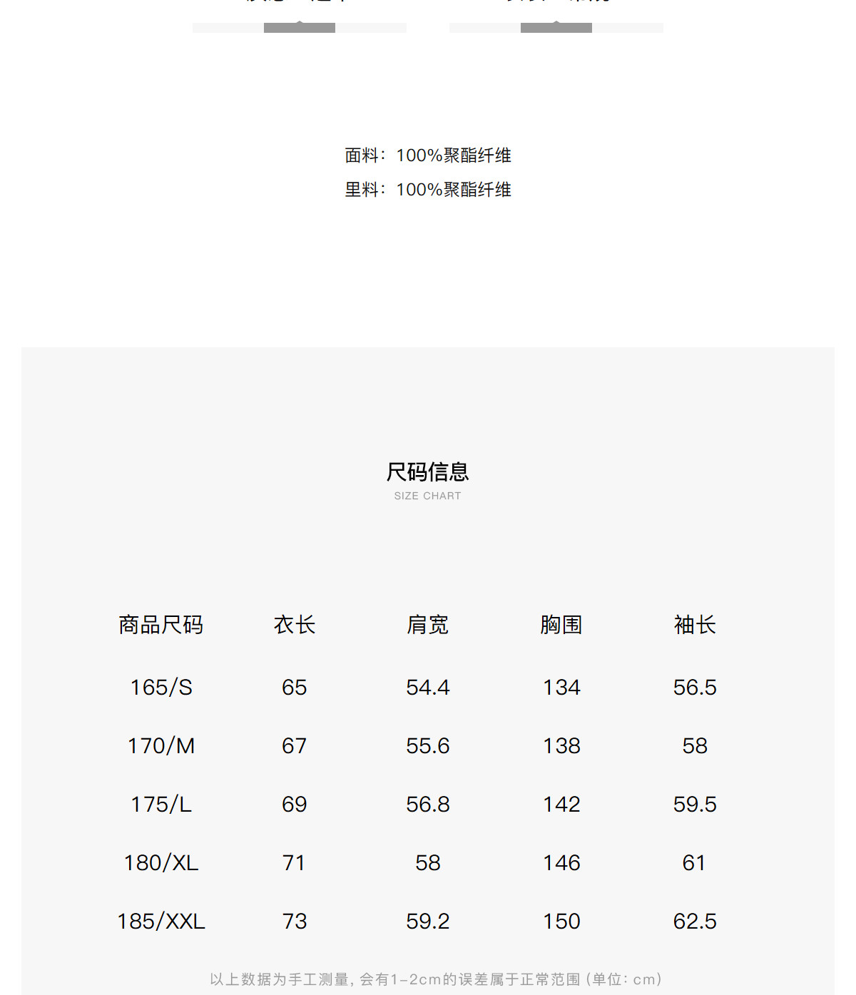 - = 185/XXL 175/L 180/XL