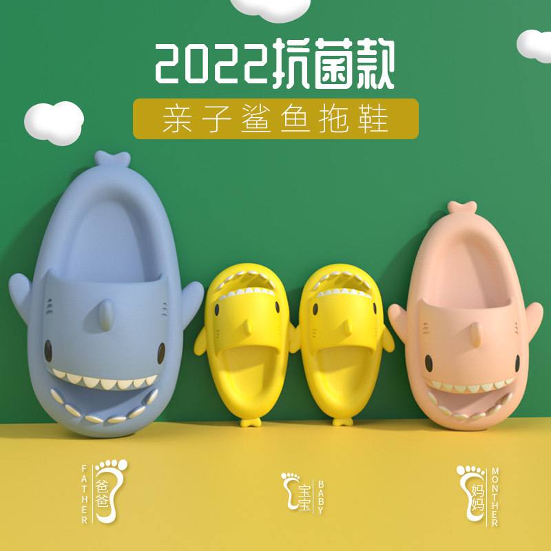 Антибактериальная мультяшная акула, летние тапочки, детские слайдеры подходит для мужчин и женщин, семейный стиль, подходит для подростков