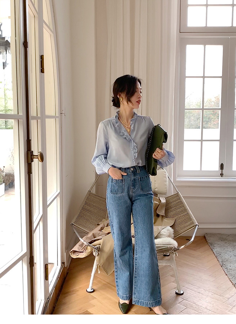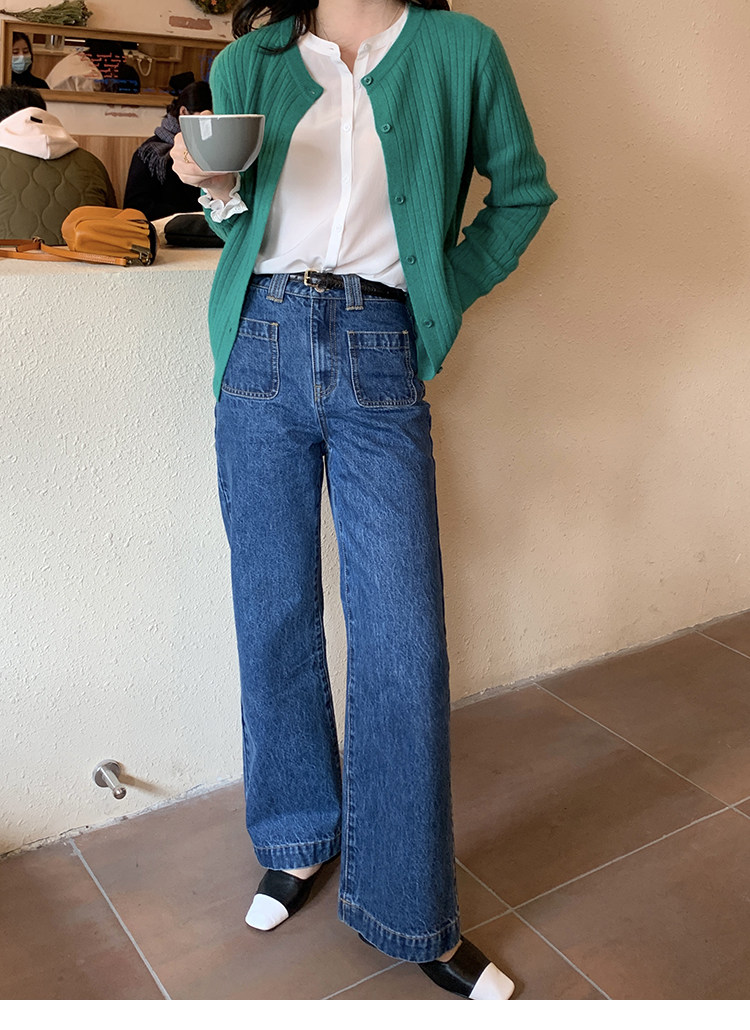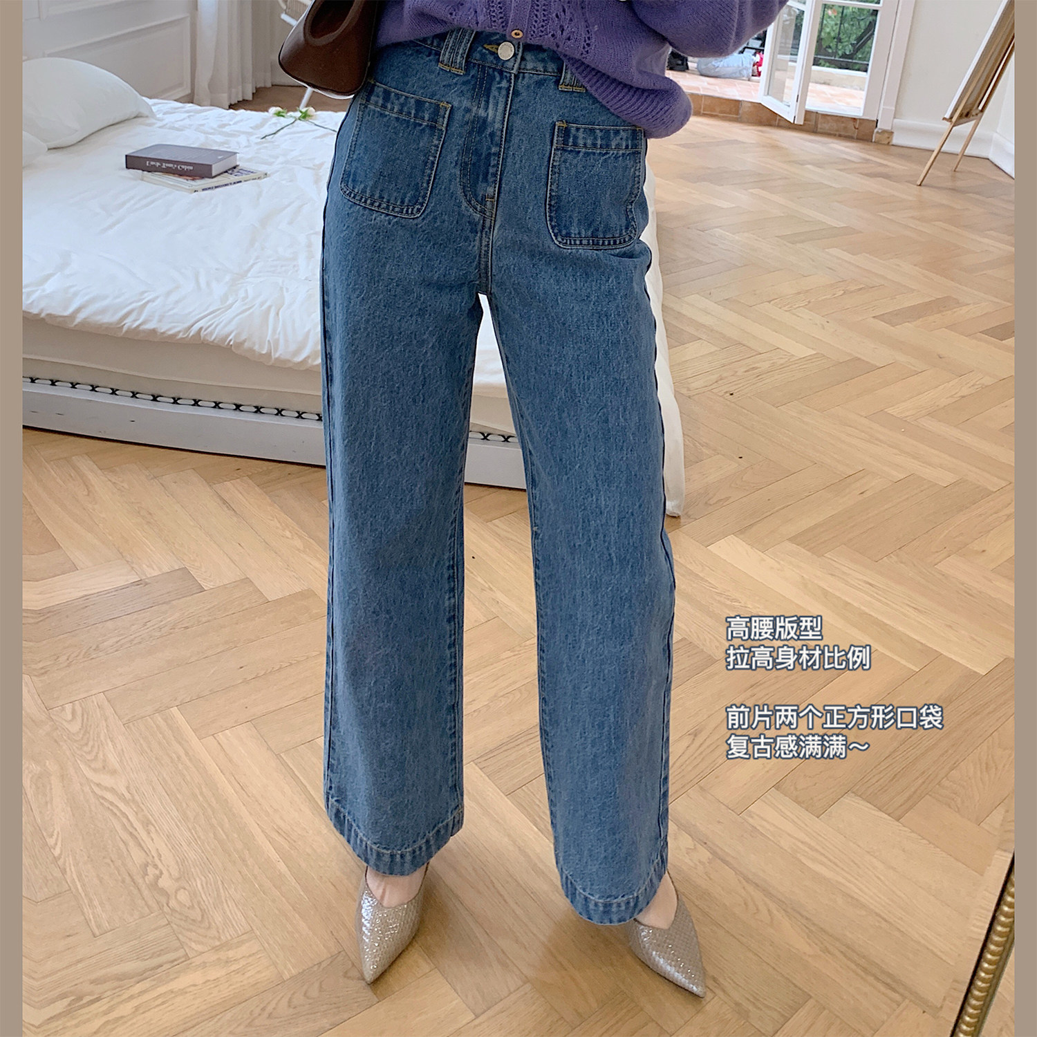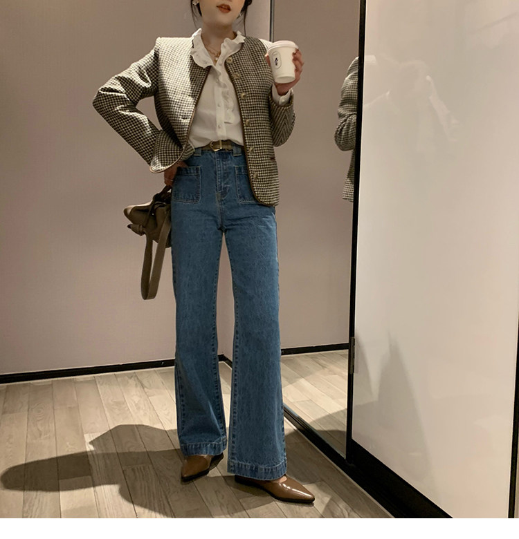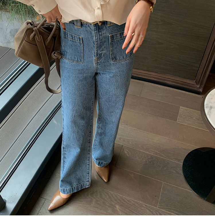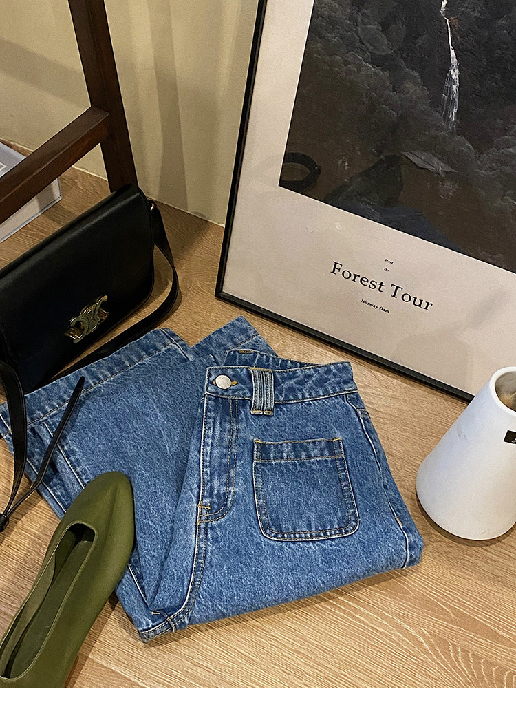 Демисезонные штаны, дизайнерский мегафон, джинсы, коллекция 2021, французский стиль, высокая талия, тренд сезона