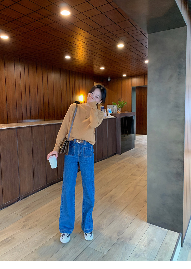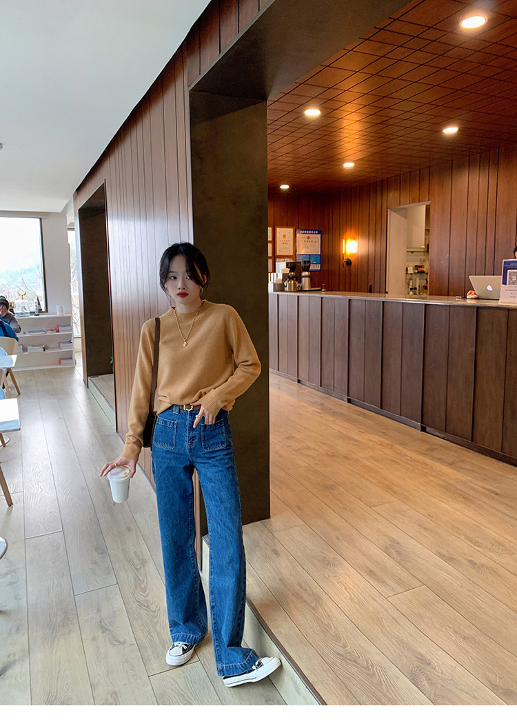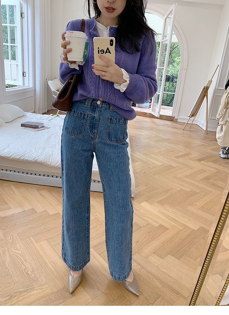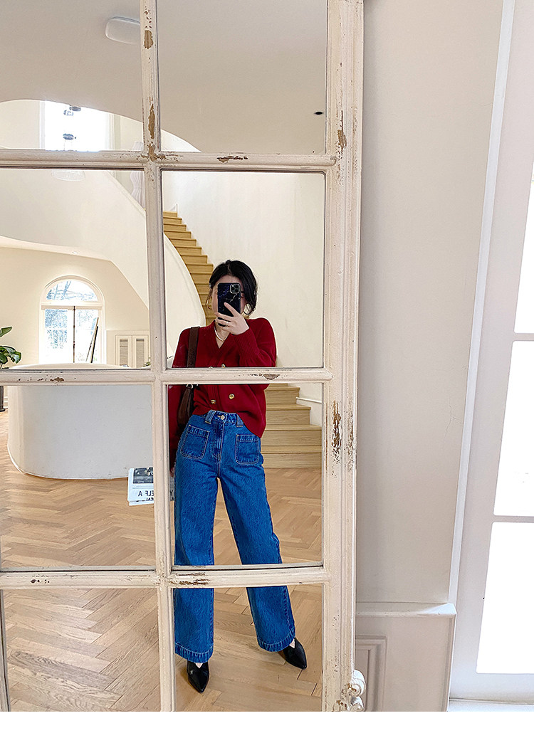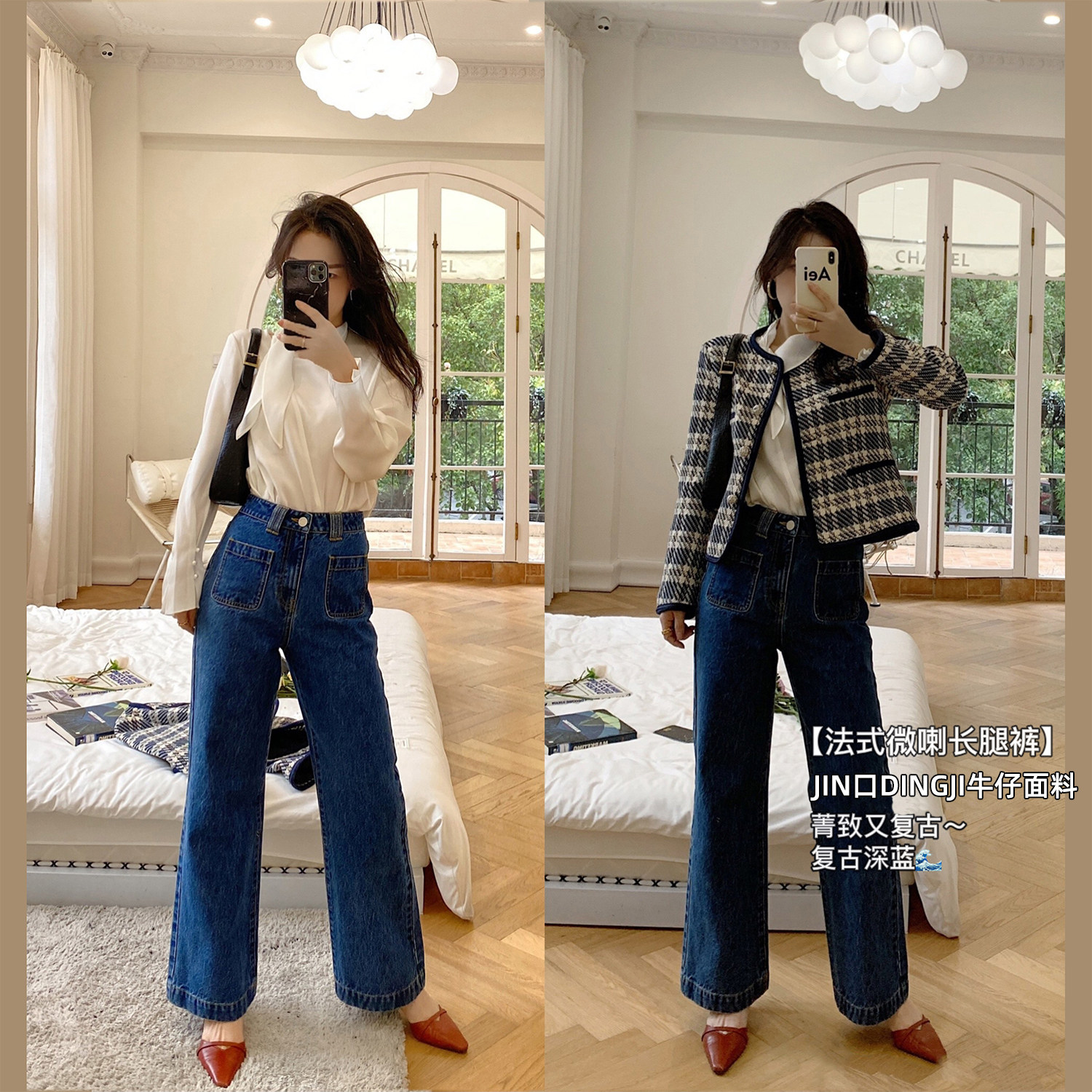Демисезонные штаны, дизайнерский мегафон, джинсы, коллекция 2021, французский стиль, высокая талия, тренд сезона