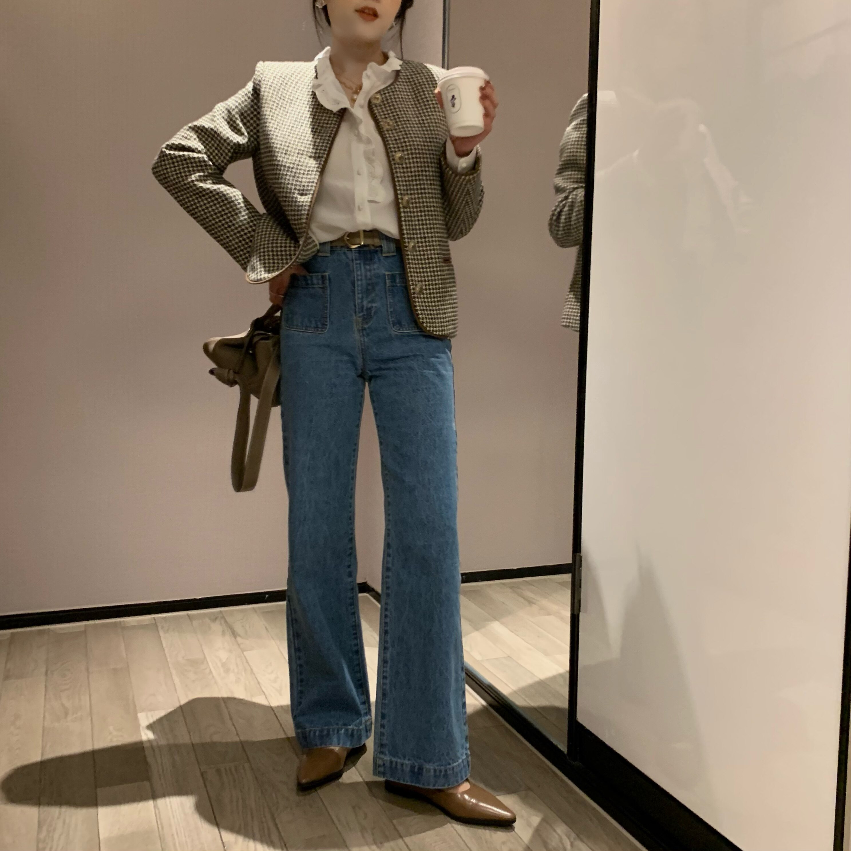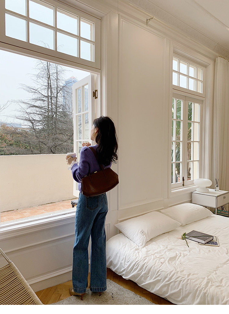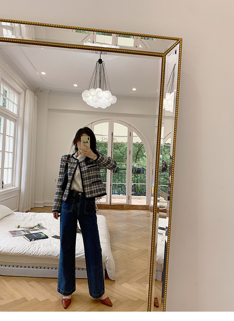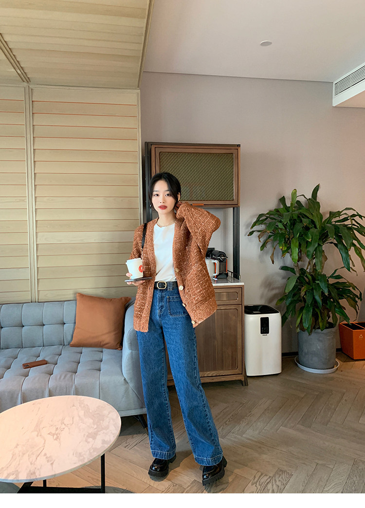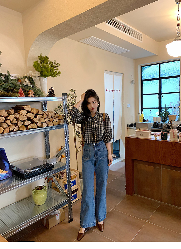 Демисезонные штаны, дизайнерский мегафон, джинсы, коллекция 2021, французский стиль, высокая талия, тренд сезона