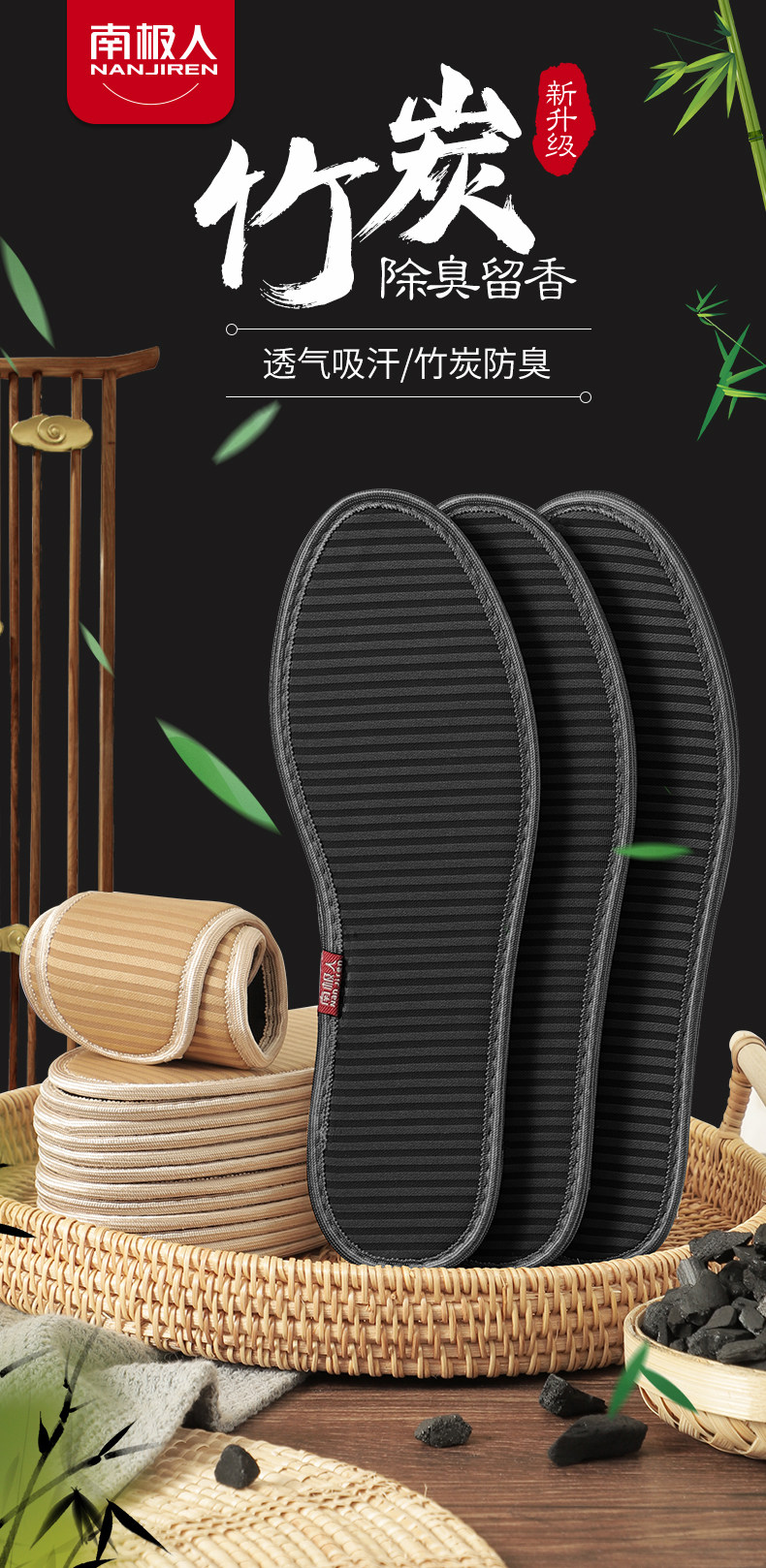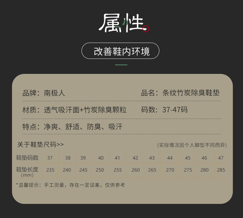 南极人 Дезодорант со стойким ароматом, мужские дышащие комфортные летние стельки, впитывает пот и запах, мягкая подошва