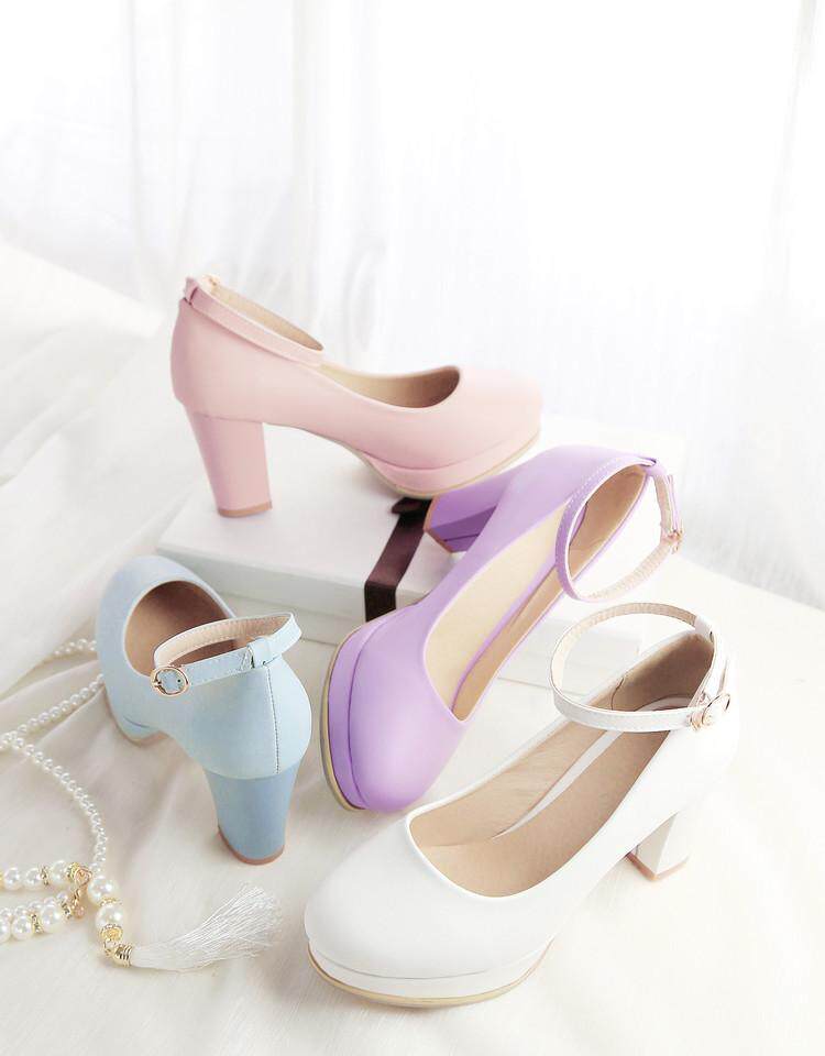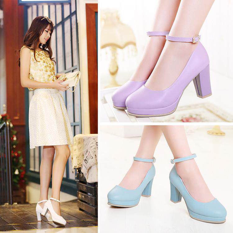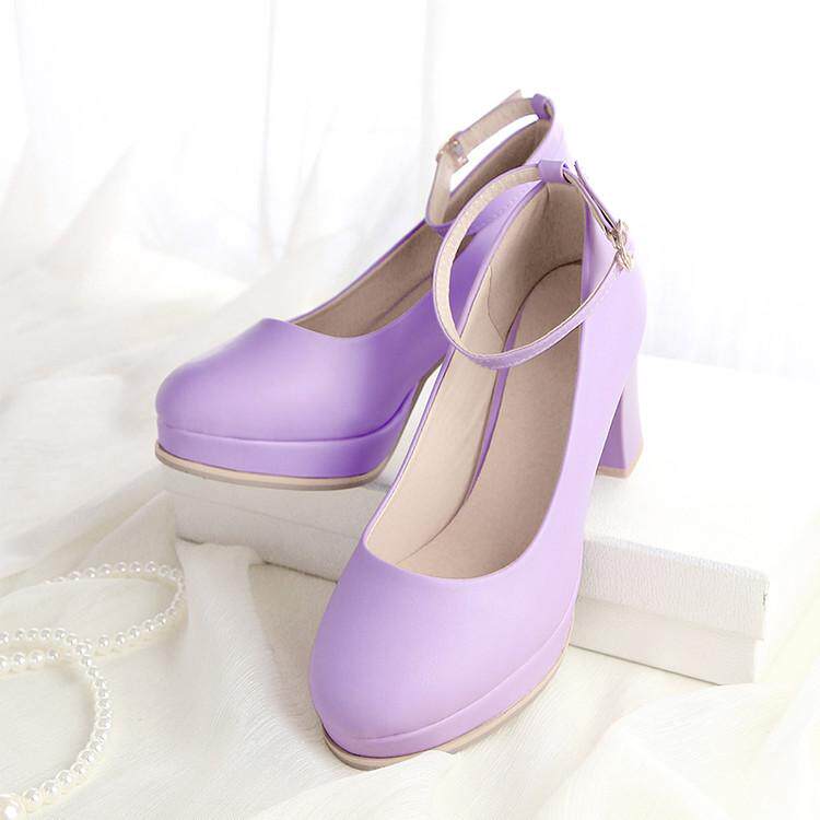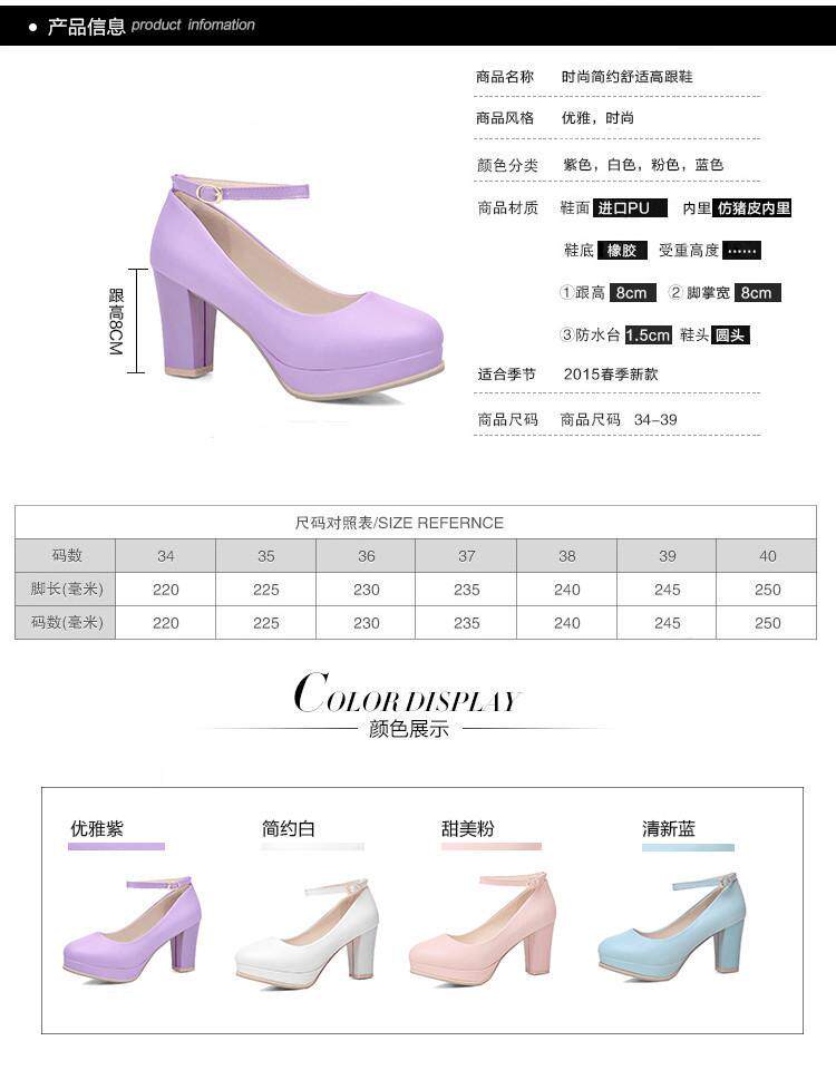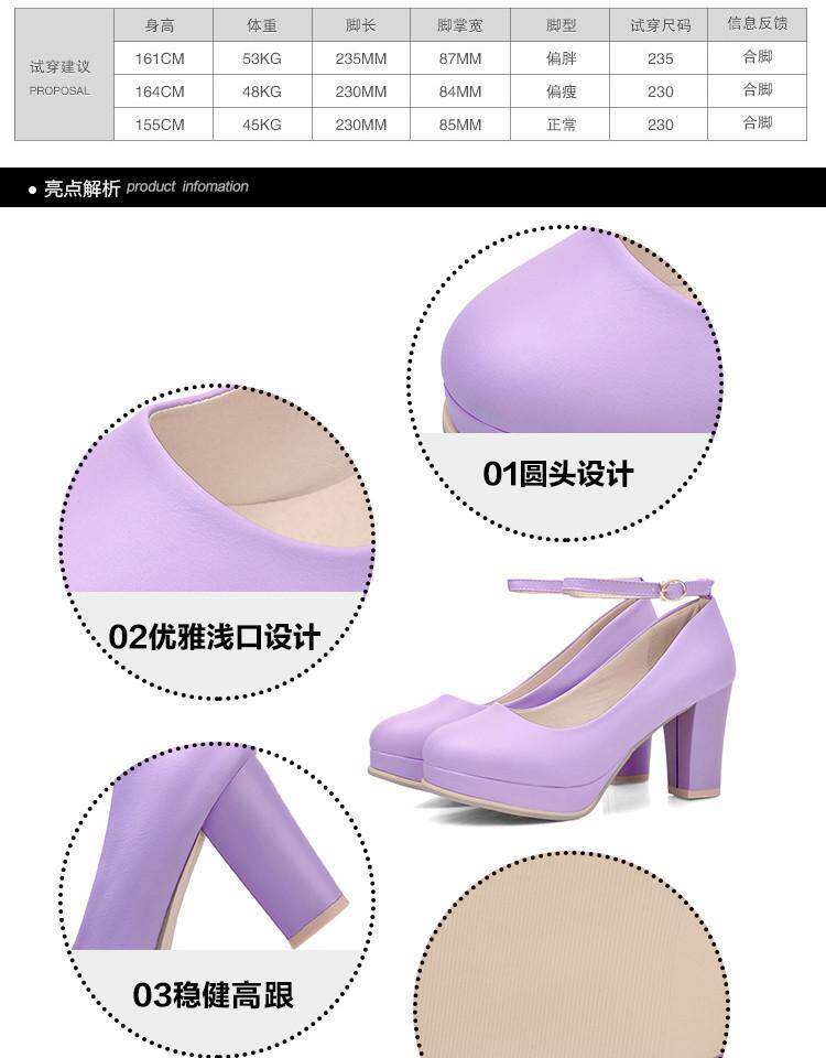 Весна и летняя корейская версия светло -пурпурной круглой головы мелководье, толстая каблука высокая каблука одиночная обувь женская водонепроницаем