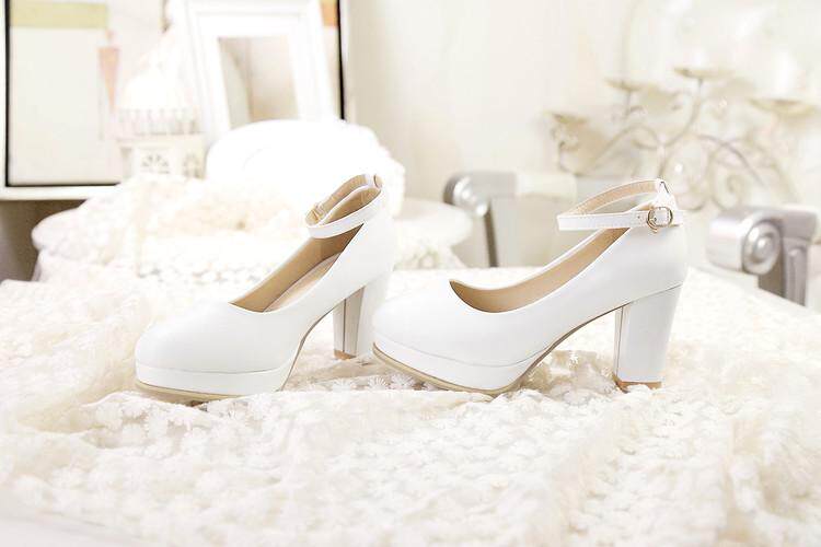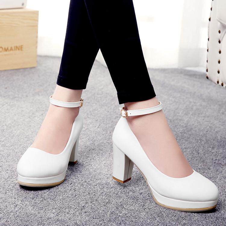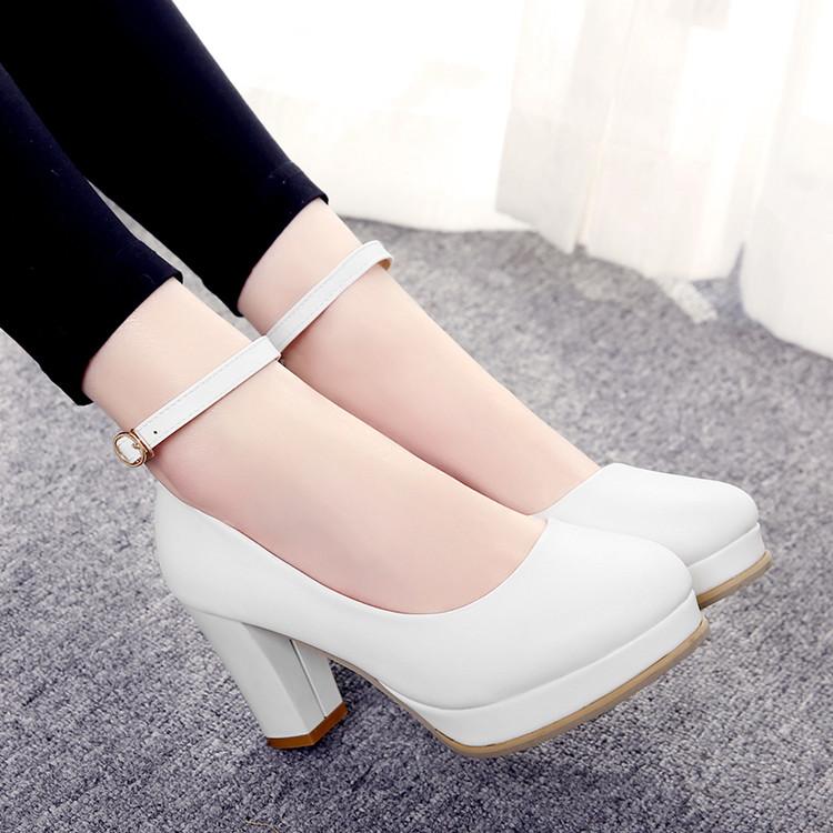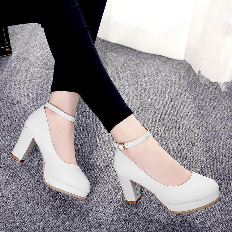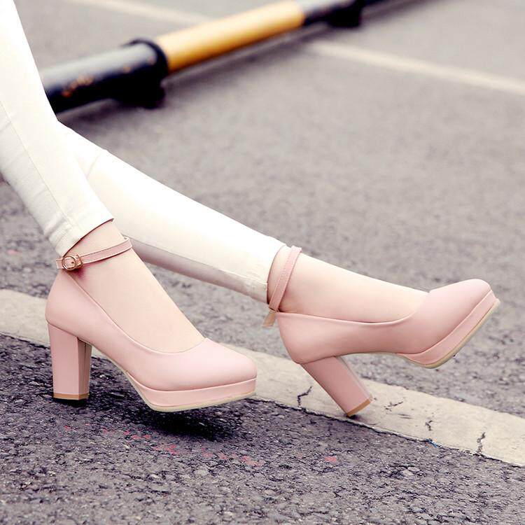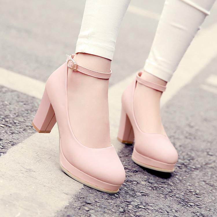 Весна и летняя корейская версия светло -пурпурной круглой головы мелководье, толстая каблука высокая каблука одиночная обувь женская водонепроницаем