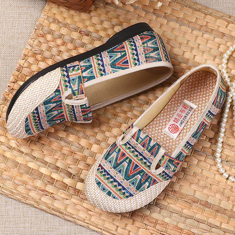 Комфортные весенние этнические слипоны, спортивная обувь для отдыха для матери, этнический стиль, мягкая подошва, для среднего возраста