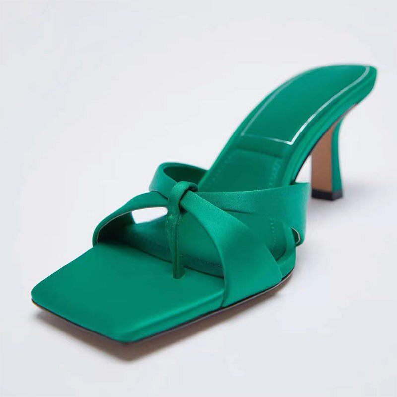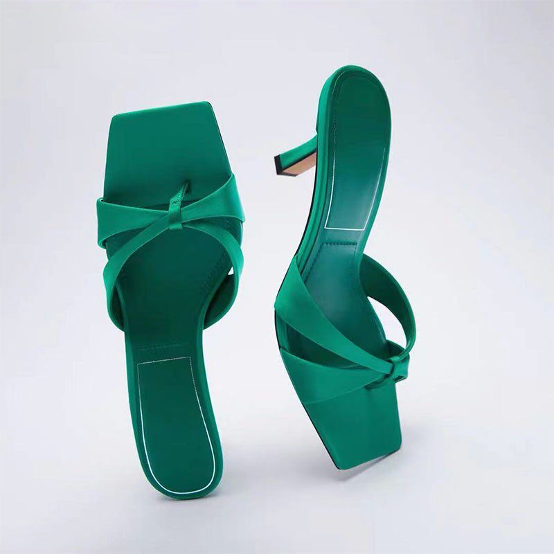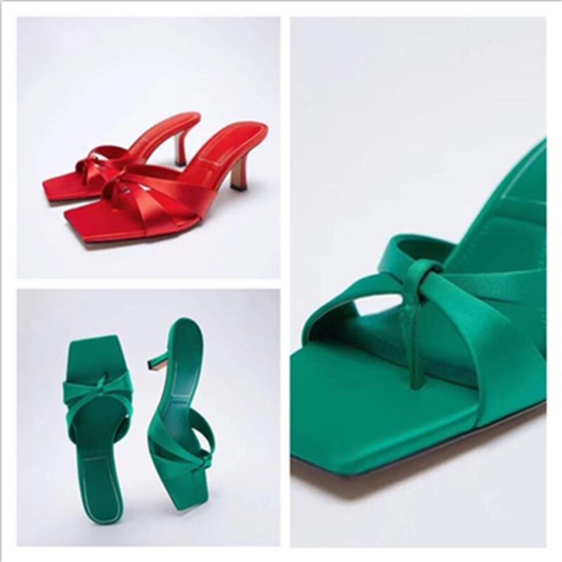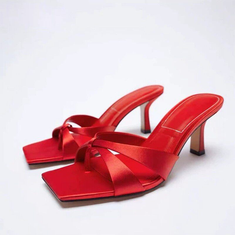 Z Home 2022, новый стиль в испанском стиле, однотонные красные атласные босоножки на шпильке с квадратным носком и узором «елочка»
