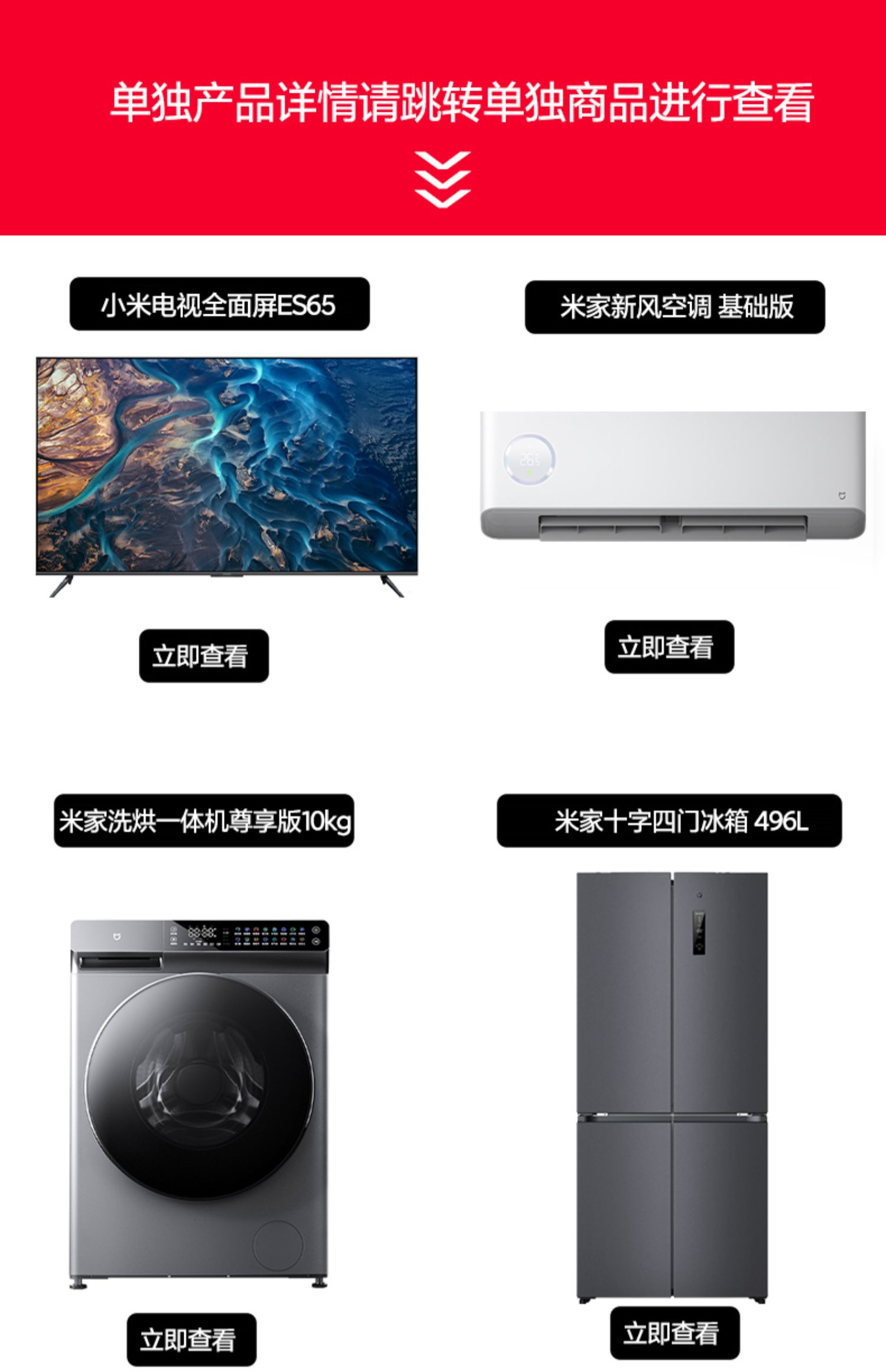 Установка Home Appliance Xiaomi Mi 65 -INCH Новое кондиционирование воздуха 496L холодильник 10 кг стиральная машина