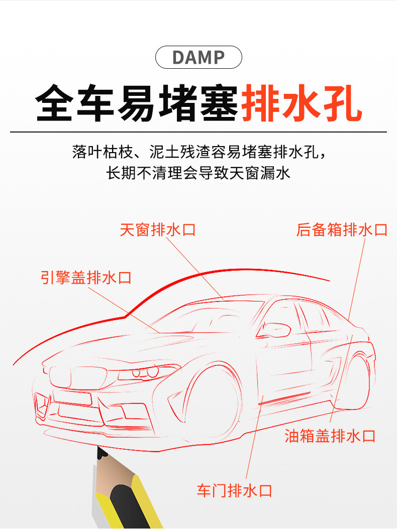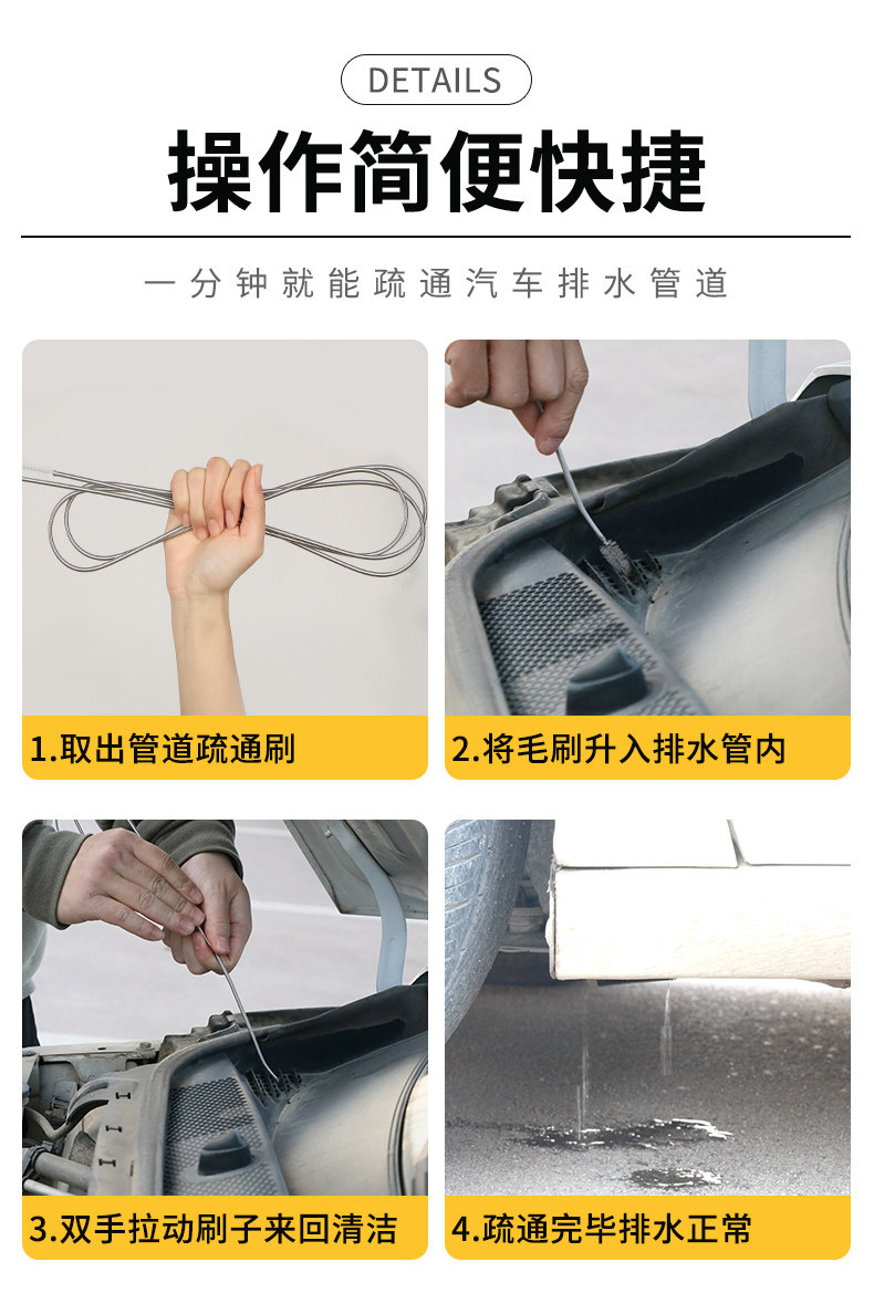 Автомобильное люк на крыше дренажные отверстия Трубопровод трубопровода затопление и дноуглубительные упражнения, очищающие карбид жилой воздушной кондиционирование дренажной трубы щетки