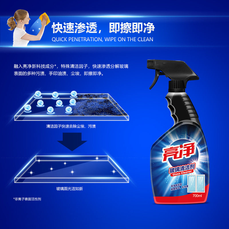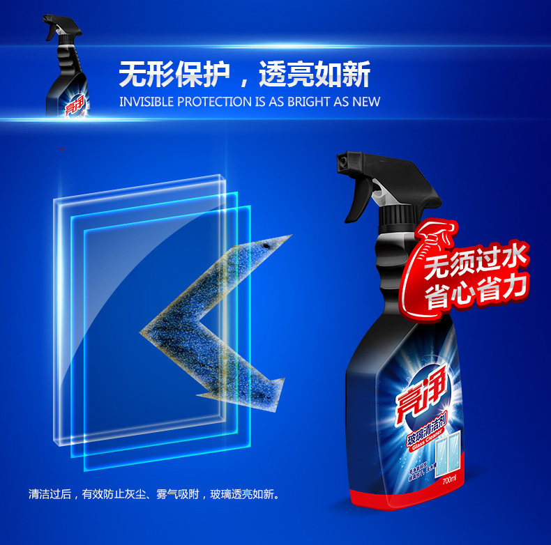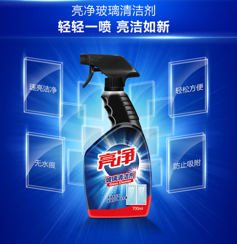亮净 Стеклянное чистящее средство, моющее средство, зеркало, 700 мл, удаление пятен