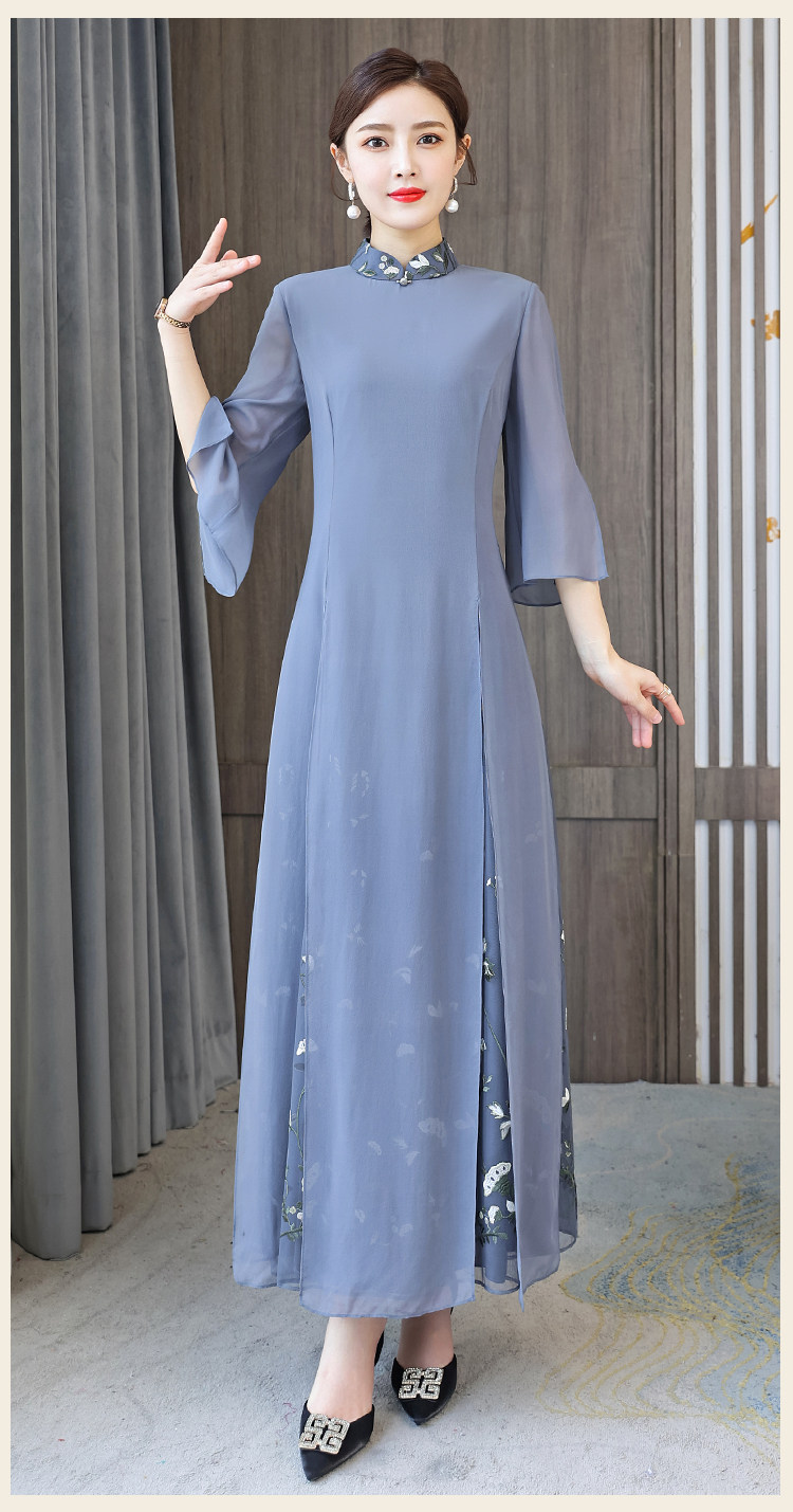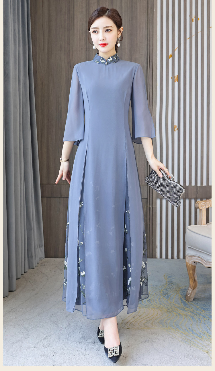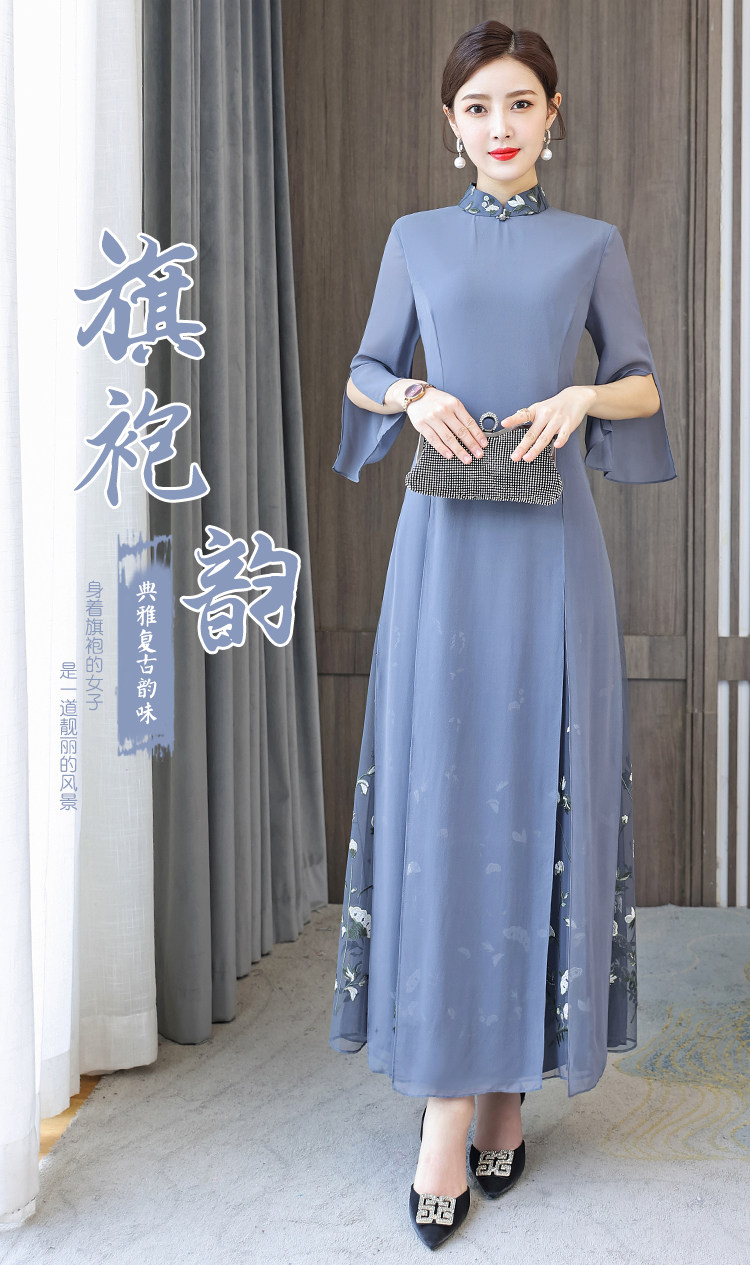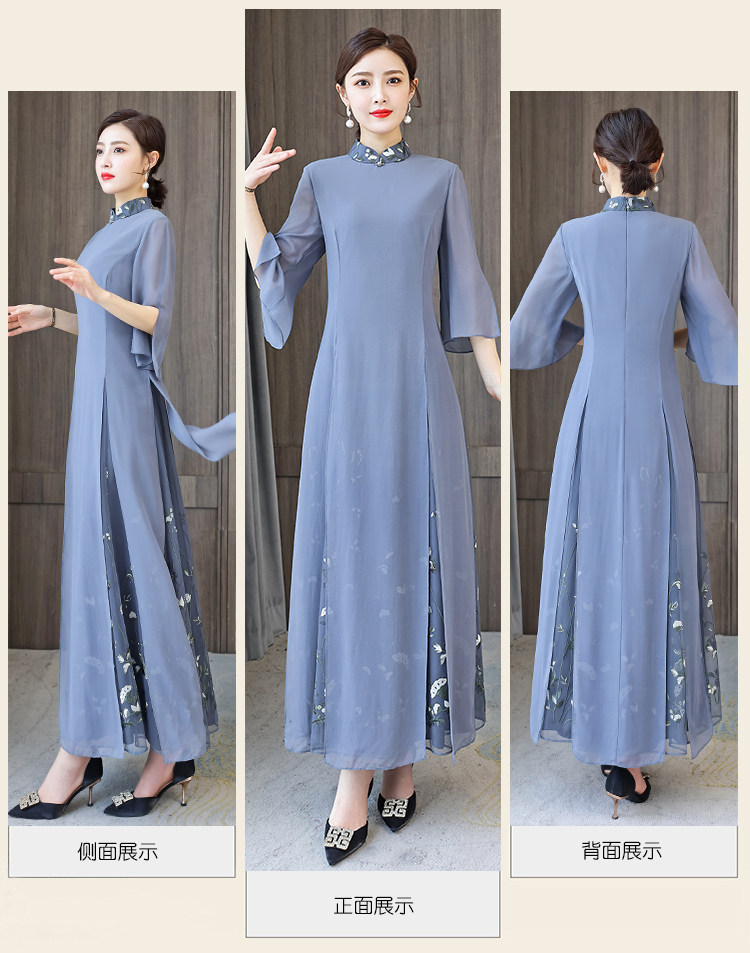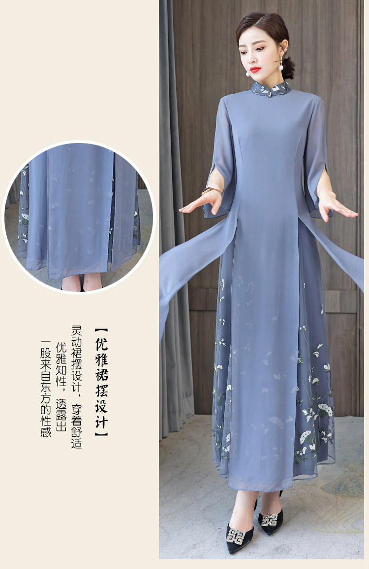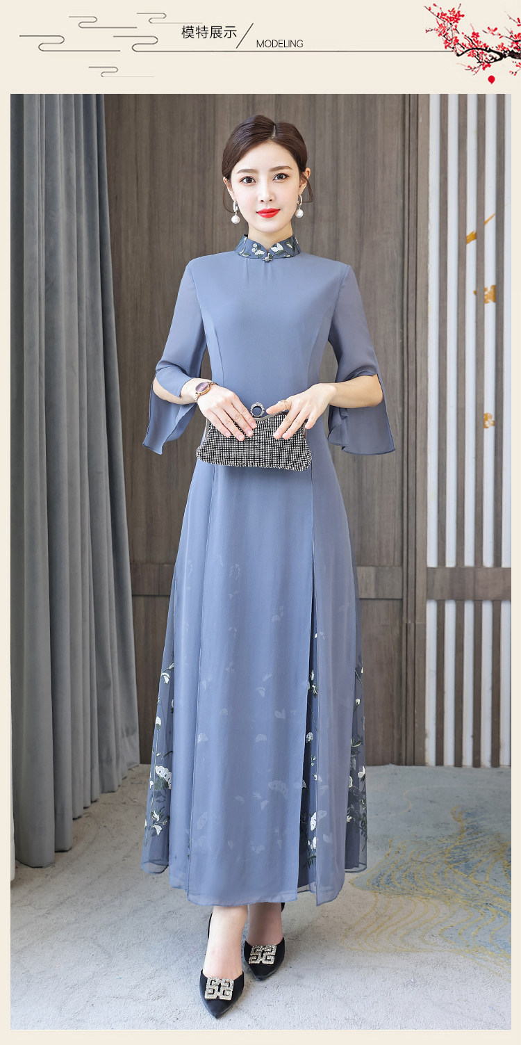 Длинное ципао для матери, летнее элитное платье, китайский стиль, яркий броский стиль