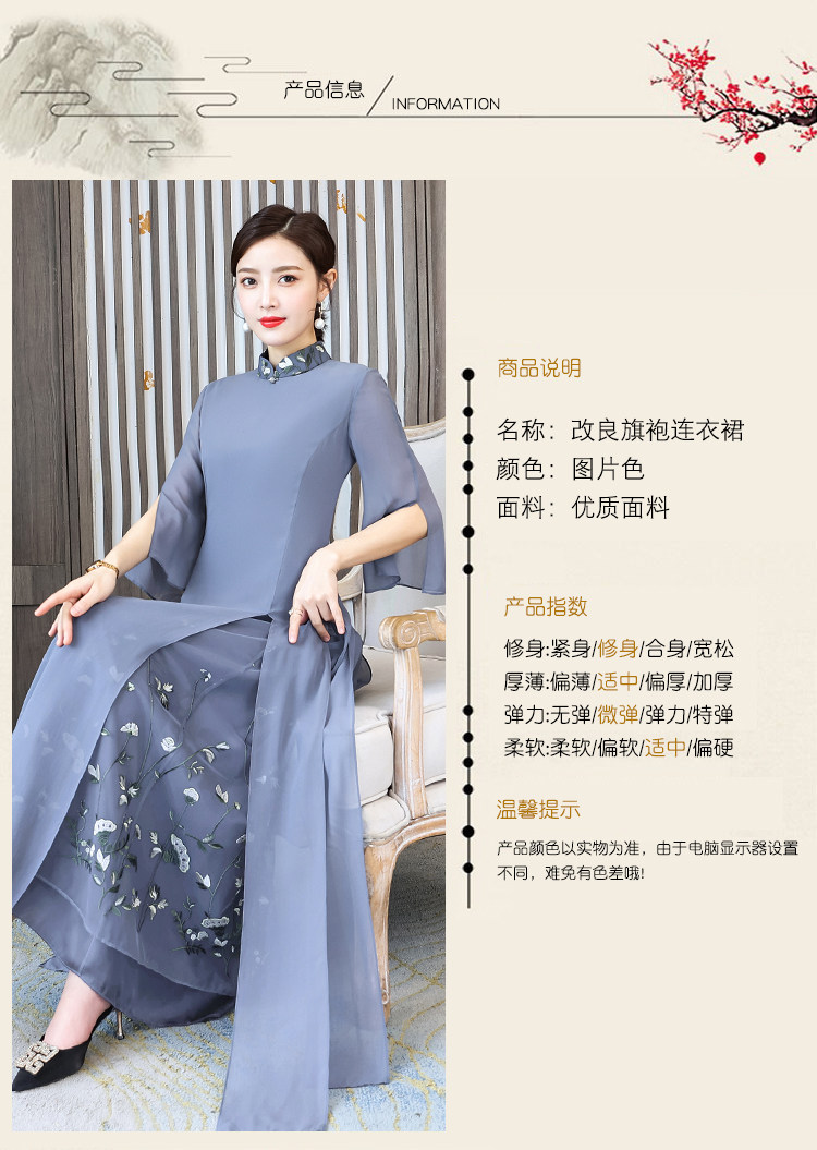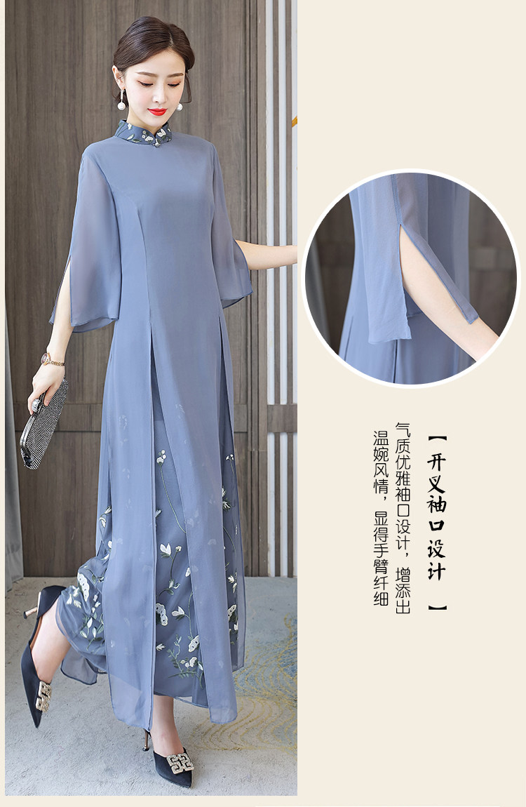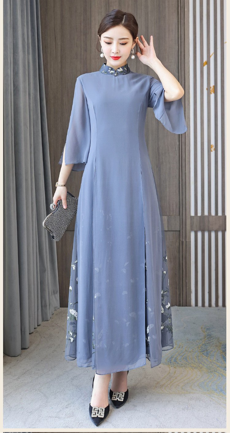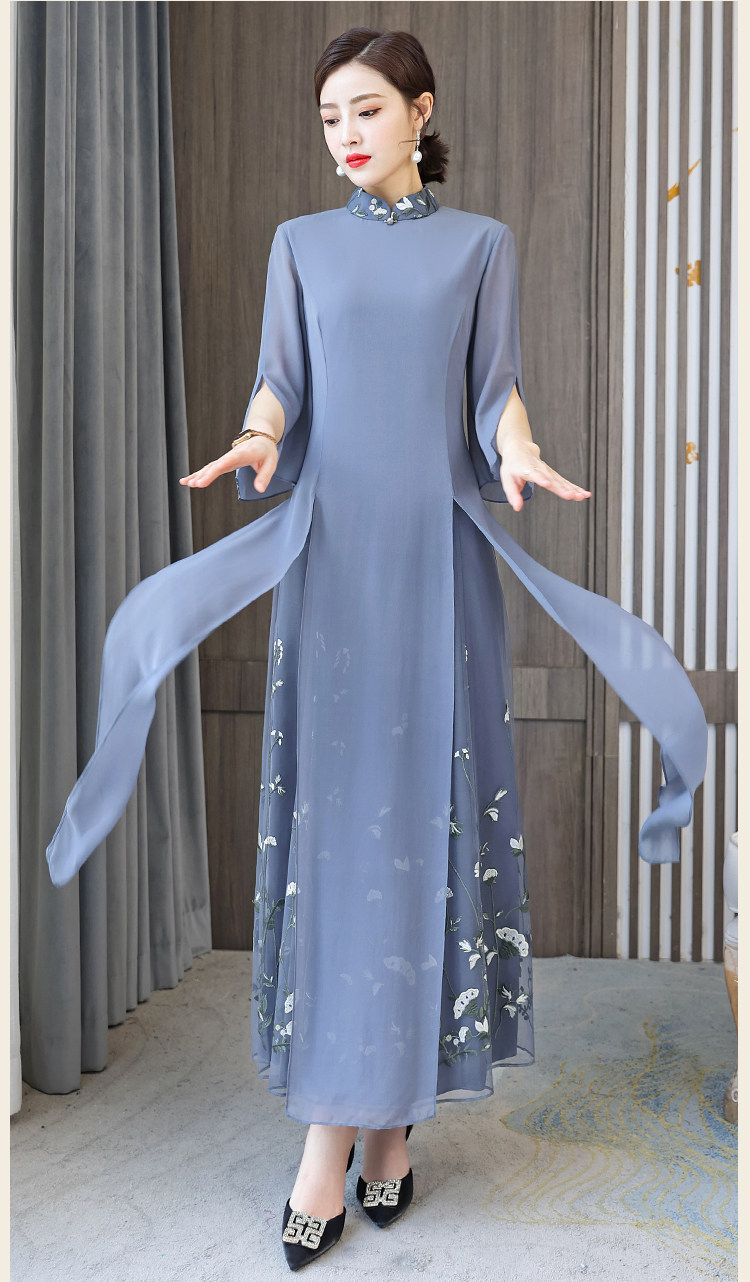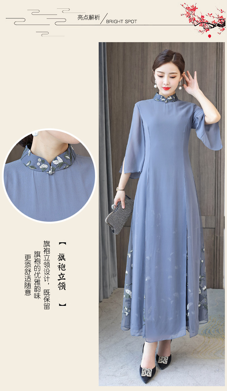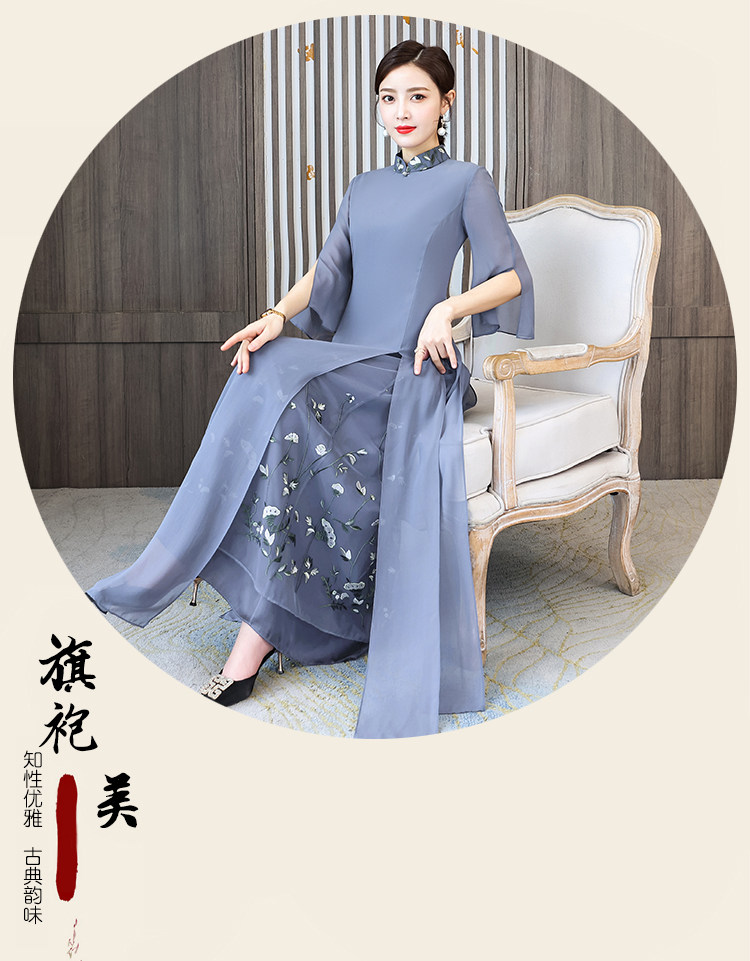 Длинное ципао для матери, летнее элитное платье, китайский стиль, яркий броский стиль
