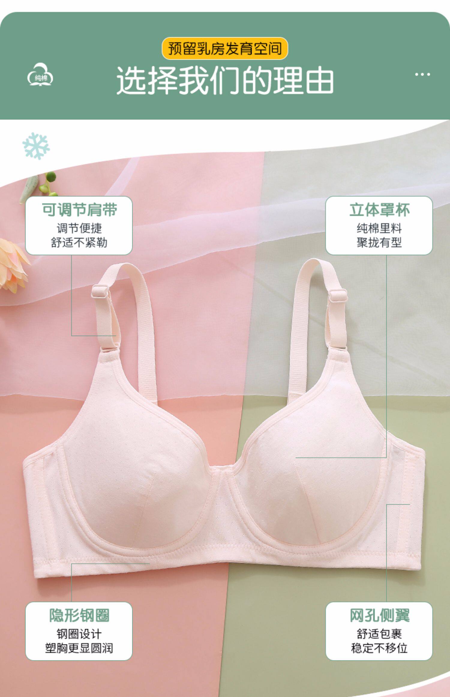 Подростковый бюстгальтер, дышащий бюстгальтер пуш-ап, хлопковый бюстгальтер с косточками для школьников, подходит для подростков