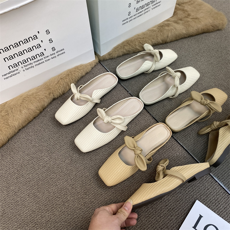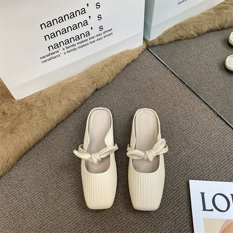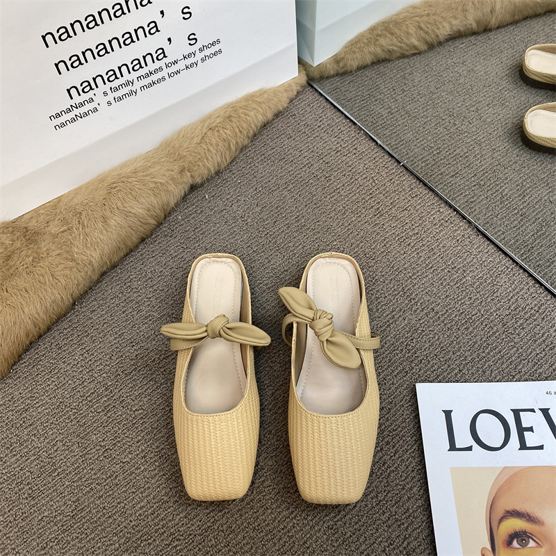 Плетение лаков, распадающая голова Сколпочная, Женская летняя одежда, ленивая обувь 2024 Половина наполовину -подъезда -энтуопаса