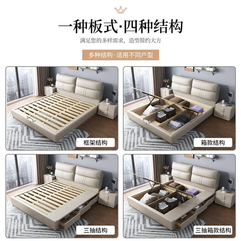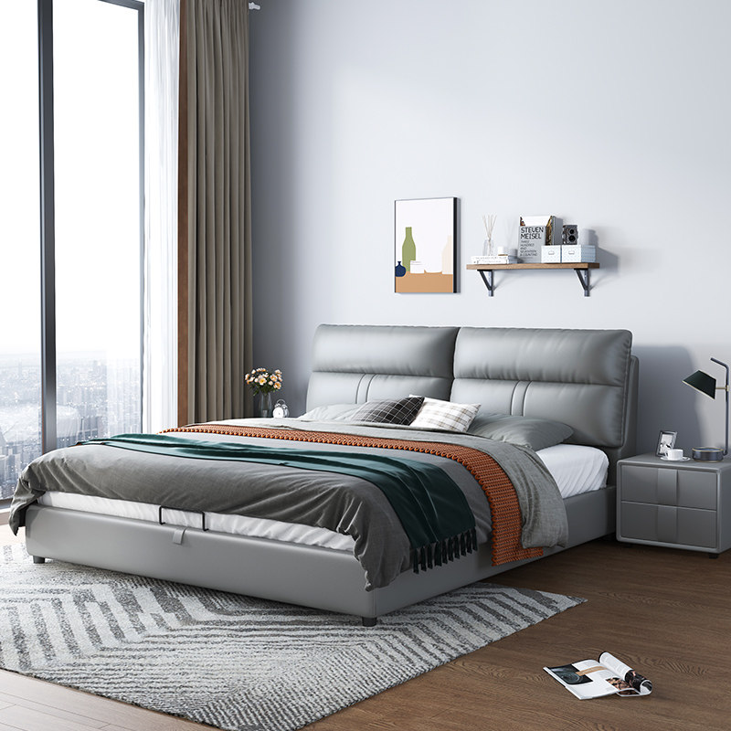 Кожаная кровать свет роскошная современная минималистская главная спальня большая кровать 1,8 метра с двуспальной кровать