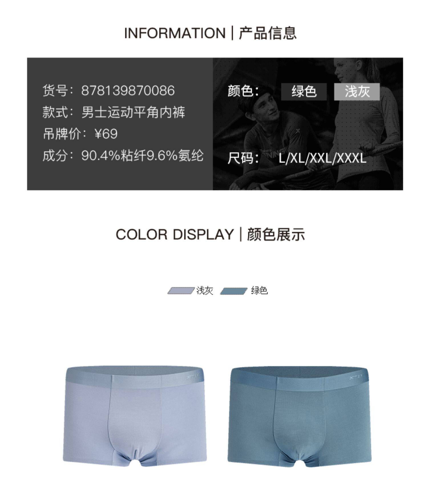 Xtep, спортивные летние трусы, антибактериальное дышащее комфортное нижнее белье