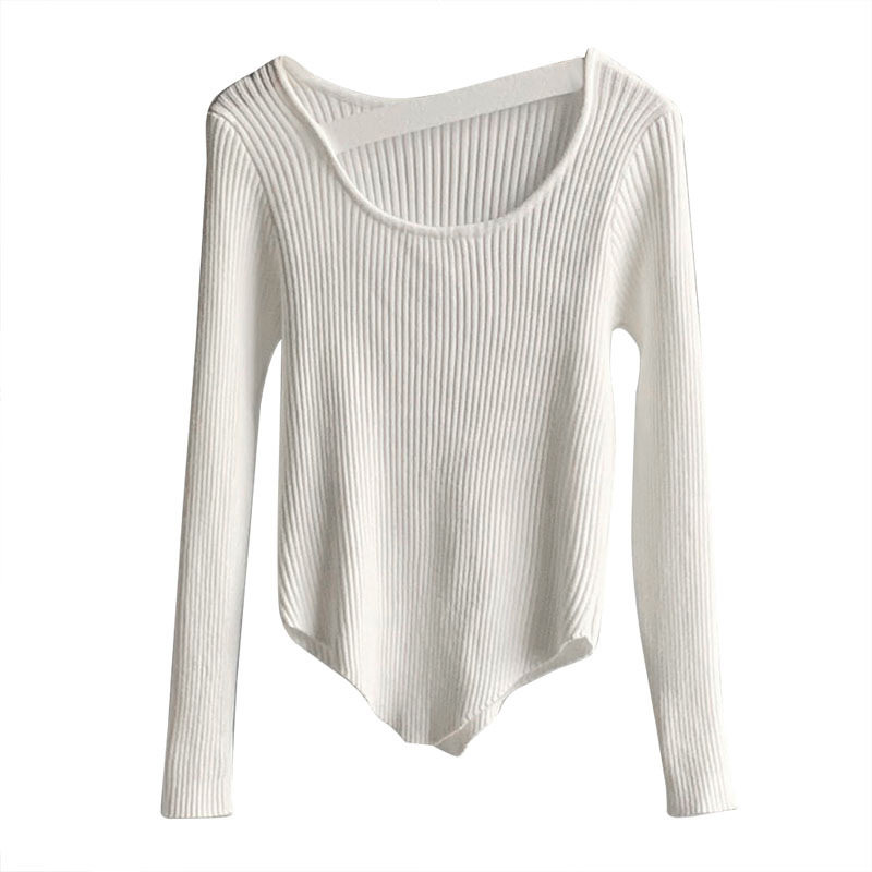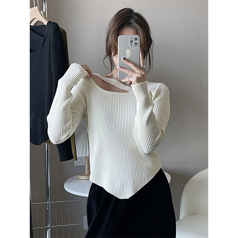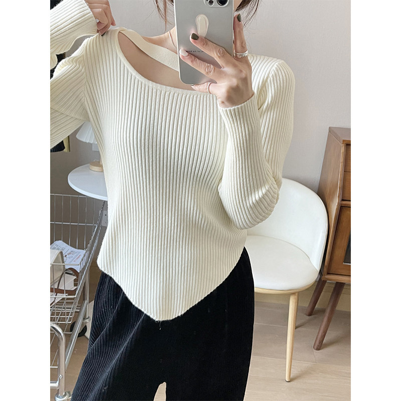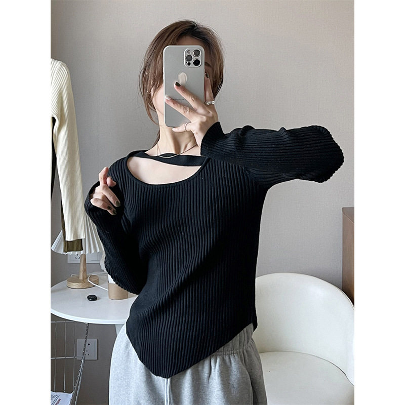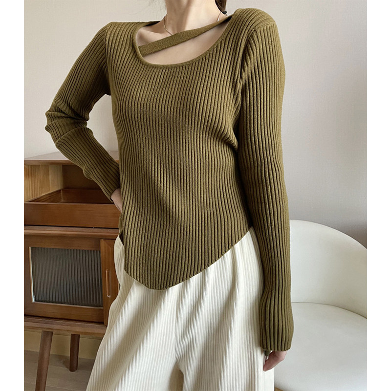 Дизайна-чувственный уличный свитер вязаная базовая рубашка для женщин с нишами и легким зрелым нерегулярным высоким классом.