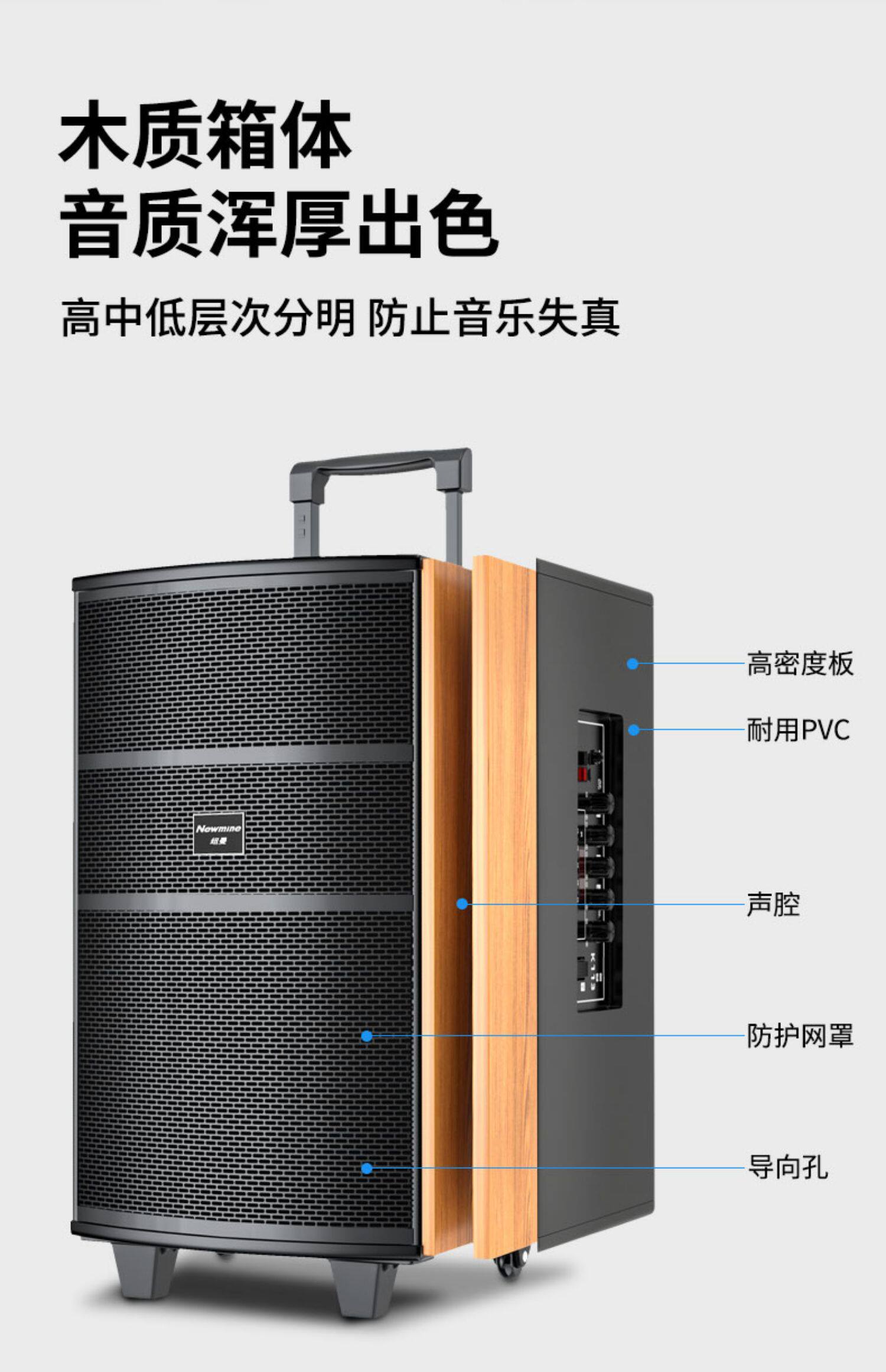 纽曼 Дорожные беспроводные колонки, микрофон, портативный чемодан, 15, 15 дюймов, bluetooth
