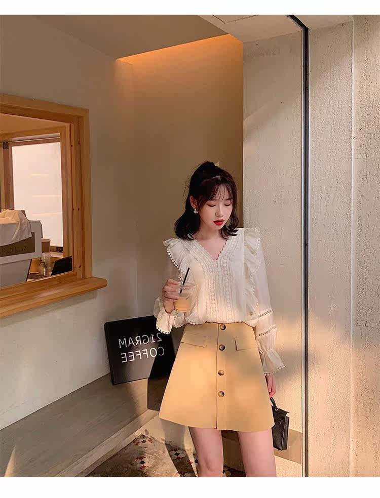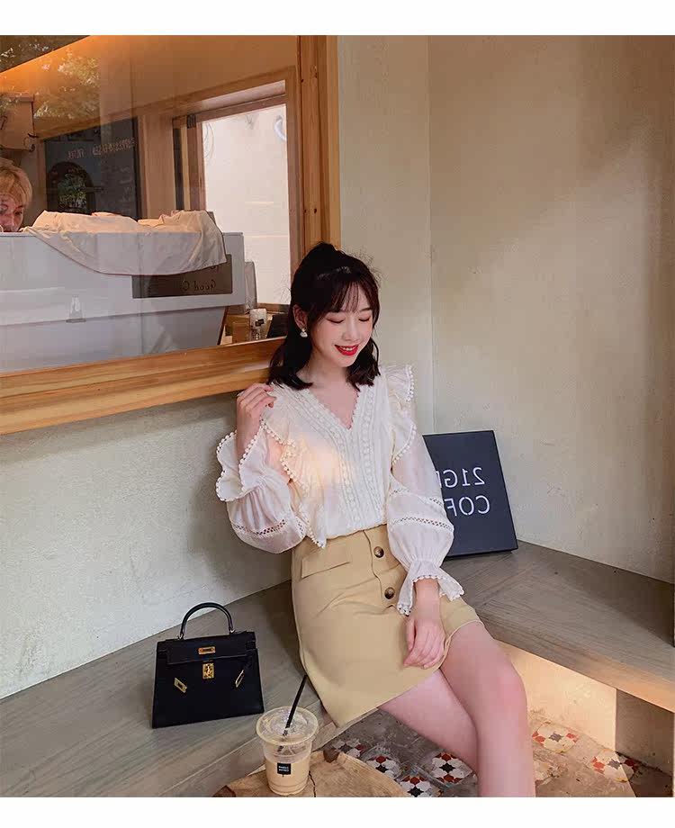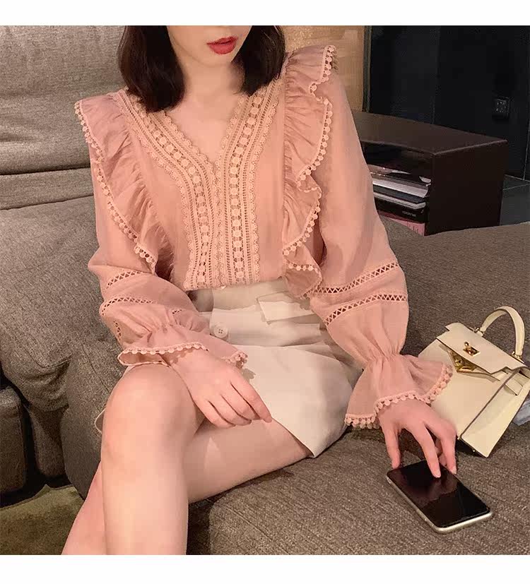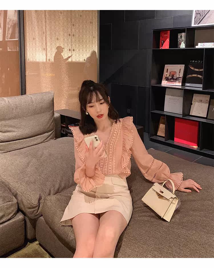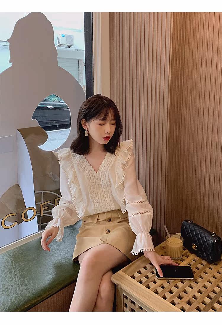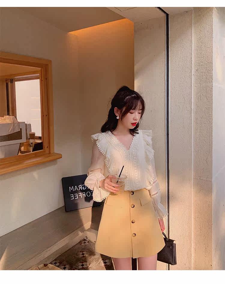 Весенний модный дизайнерский мегафон, рубашка, 2022 года, тренд сезона, городской стиль, V-образный вырез
