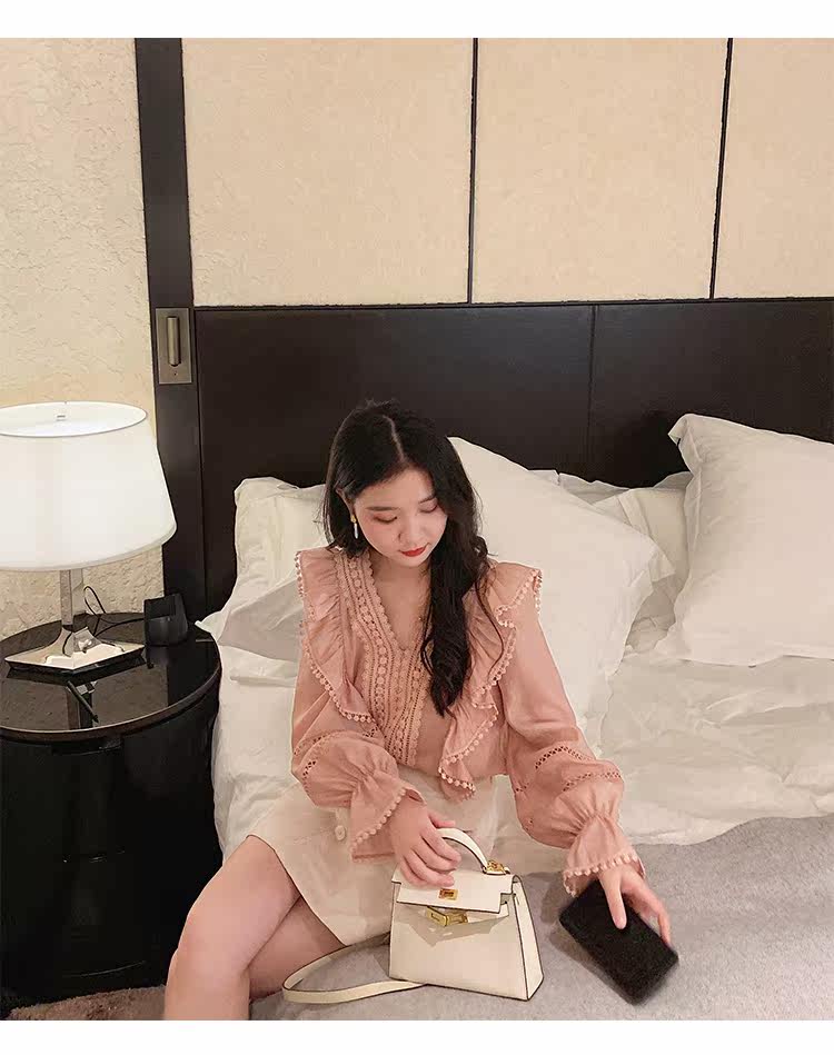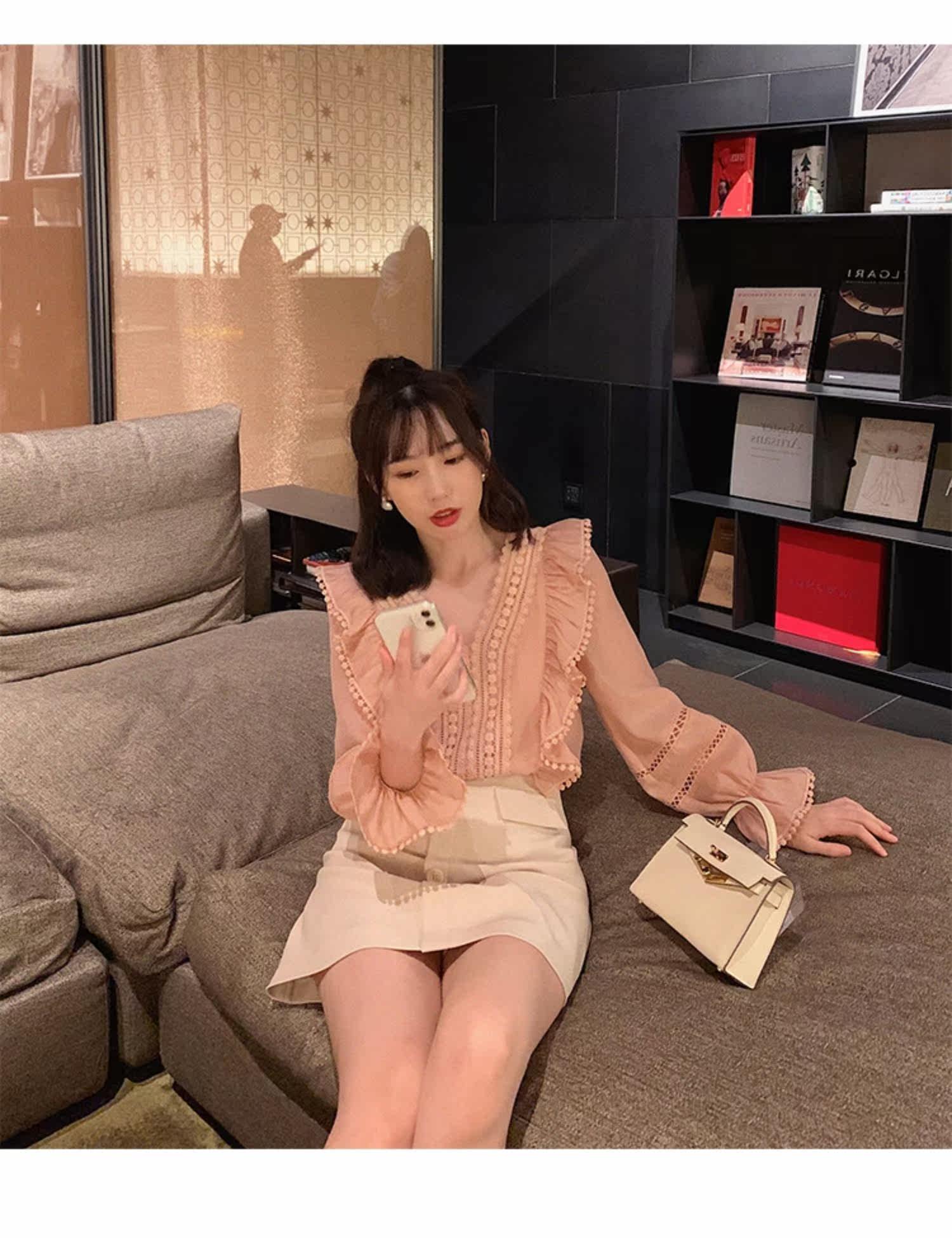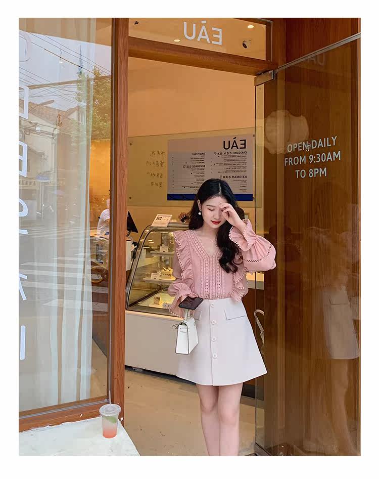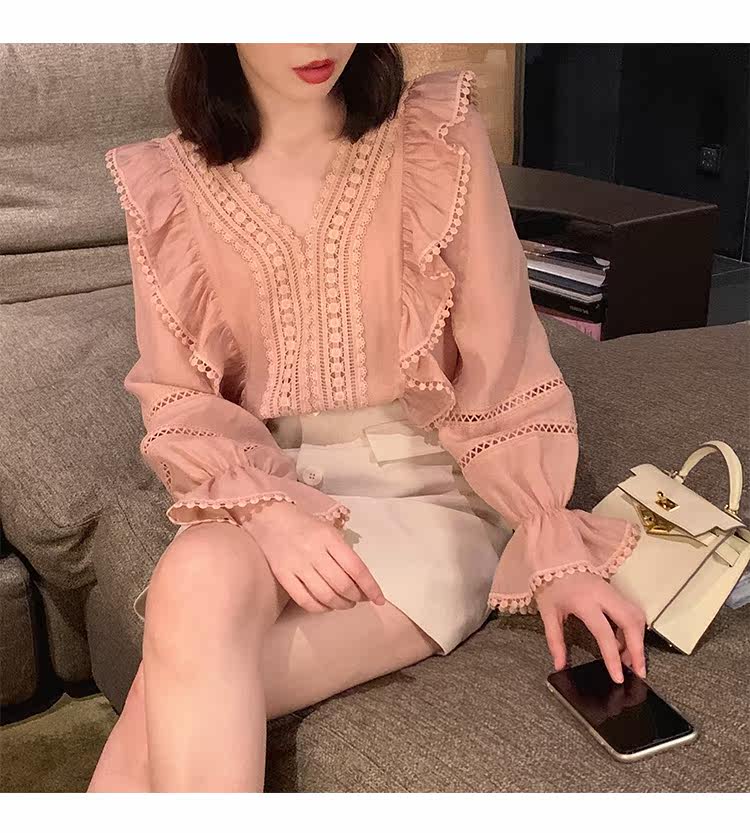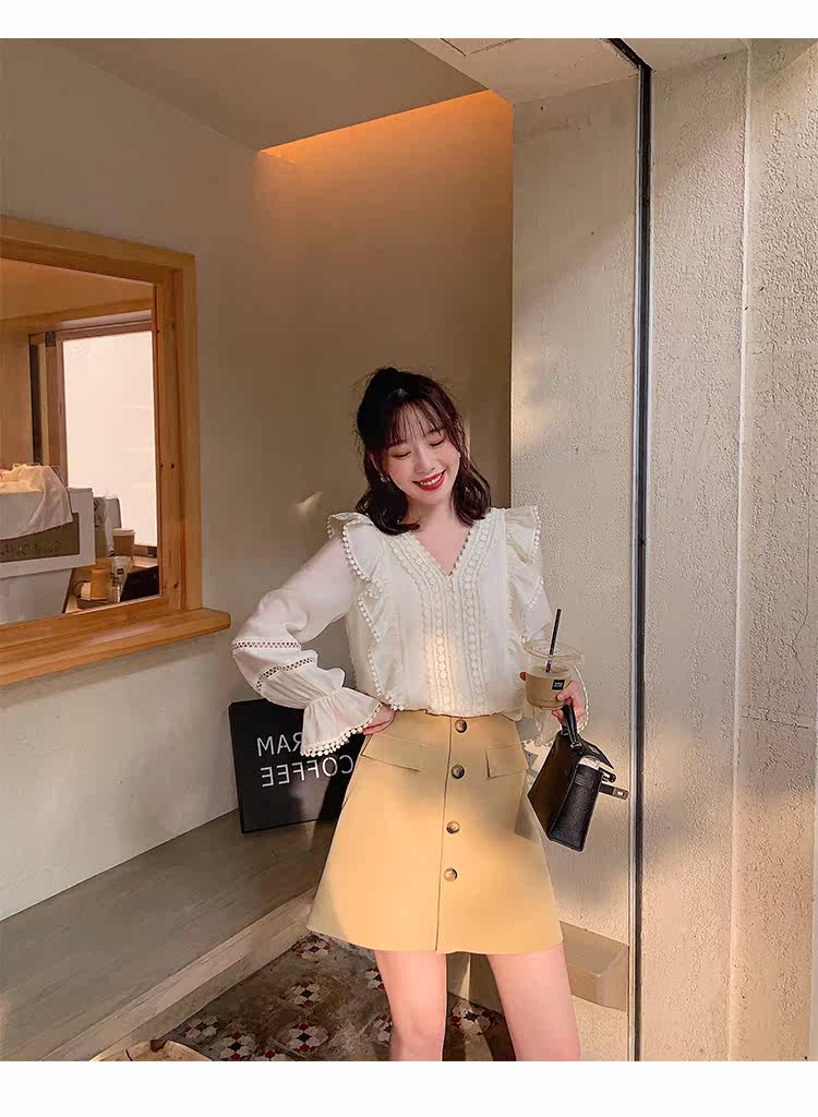 Весенний модный дизайнерский мегафон, рубашка, 2022 года, тренд сезона, городской стиль, V-образный вырез