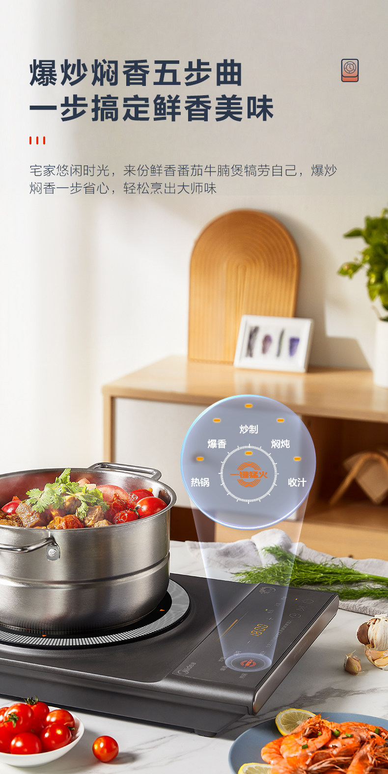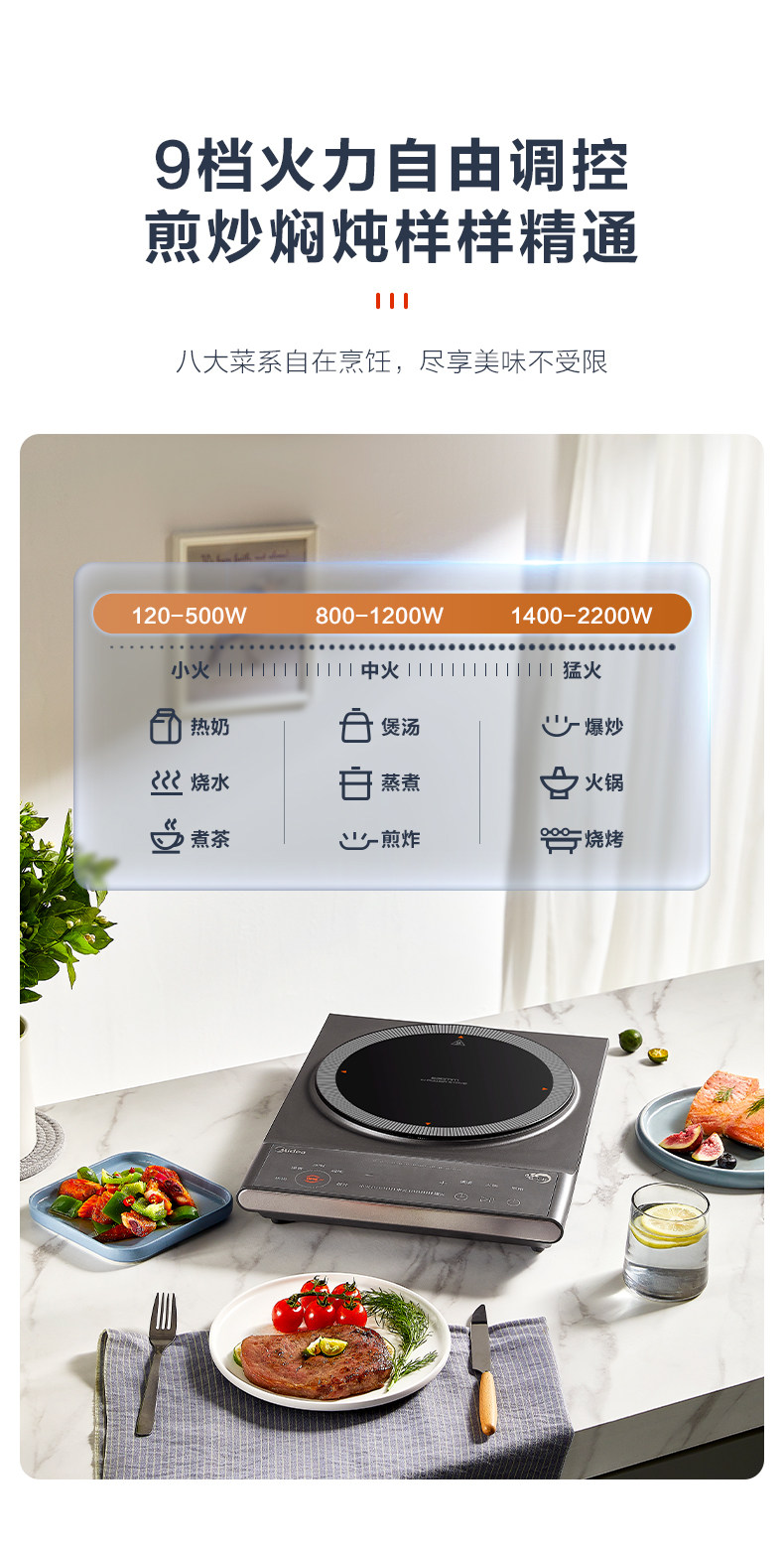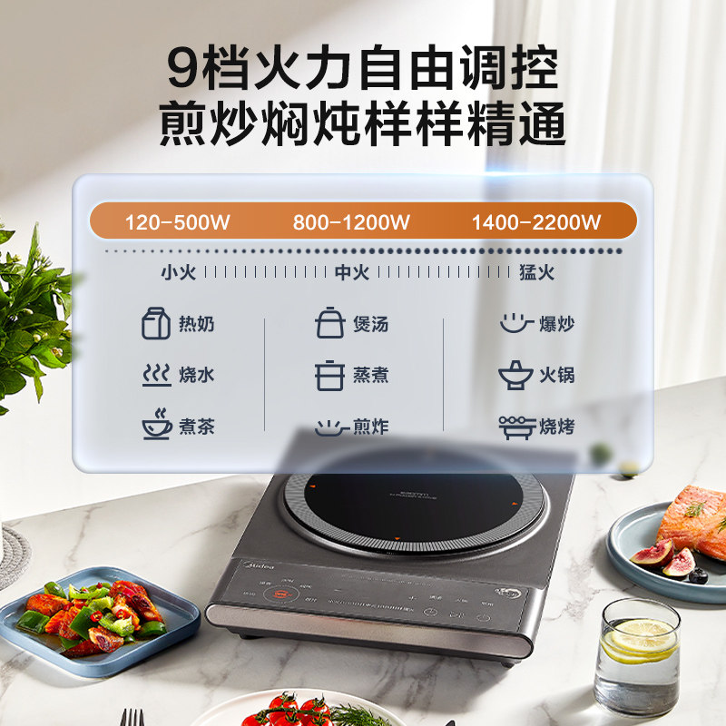 Индукционная плита Midea Домохозяйство с высокой мощной мощностью, постоянная однородная, горячая жаркая большая пожарная батарея с аккумуляторной батареей
