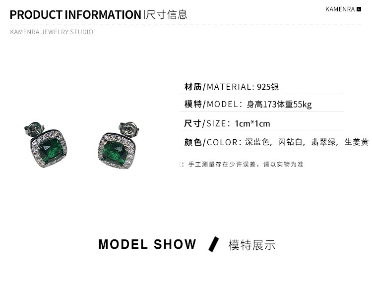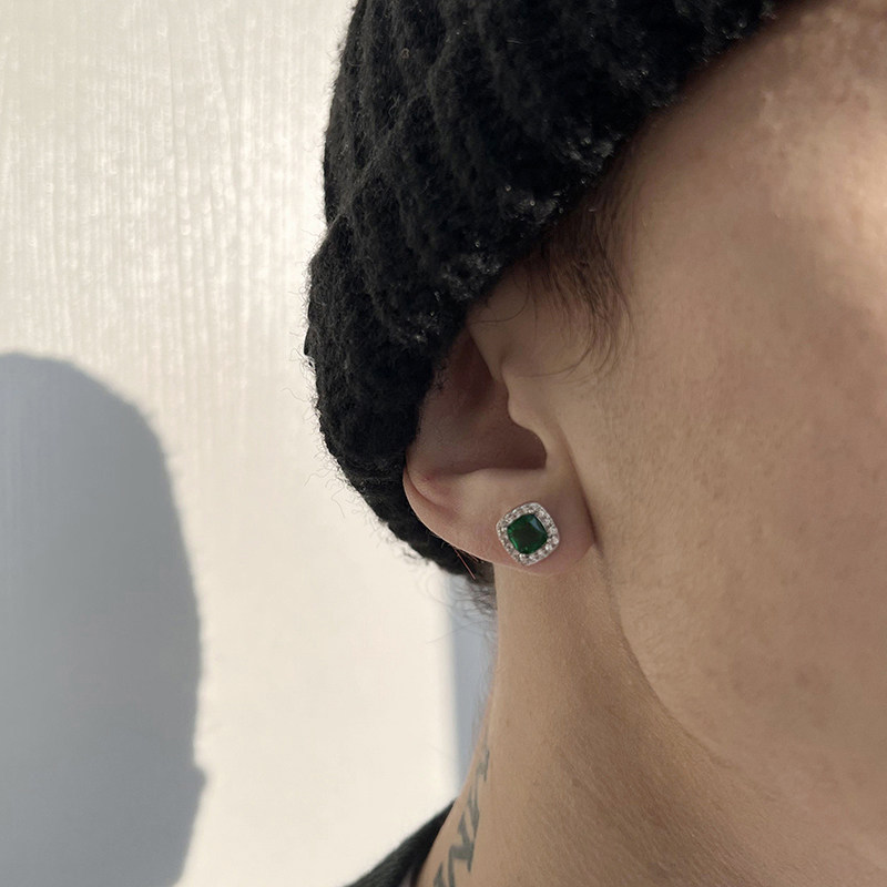 Ретро трендовые брендовые серьги изумруд в стиле хип-хоп, европейский стиль, с драгоценным камнем, серебро 925 пробы