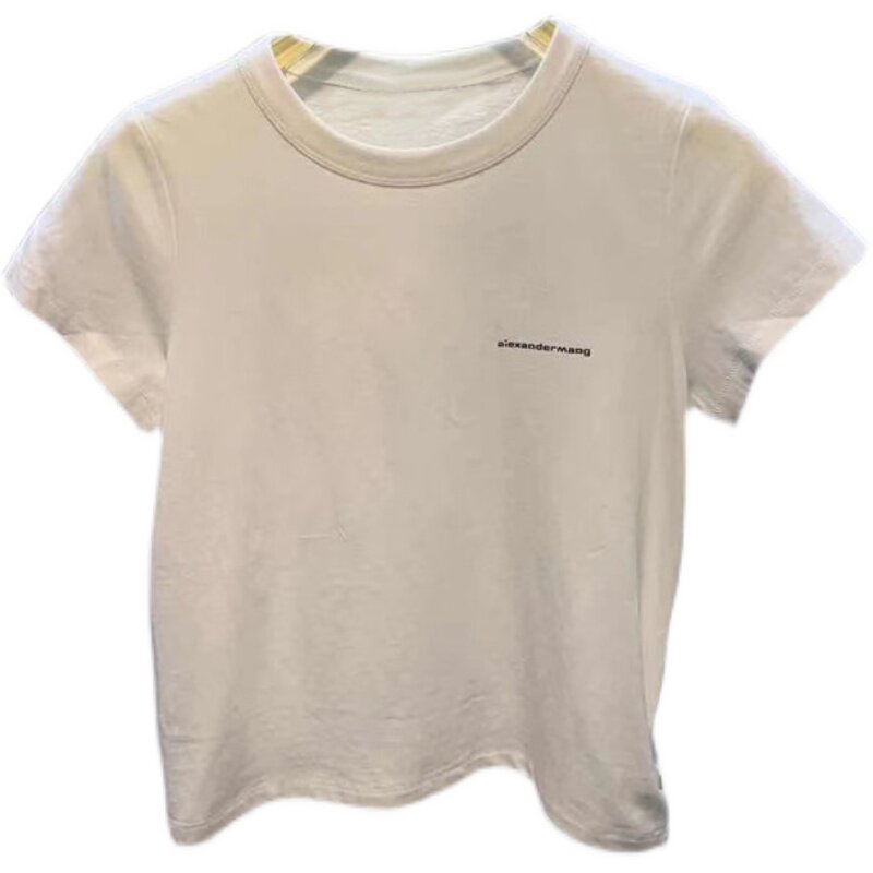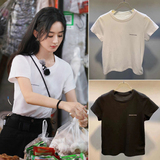Белая короткая приталенная летняя черная футболка, короткий рукав, защита от солнца