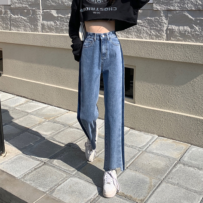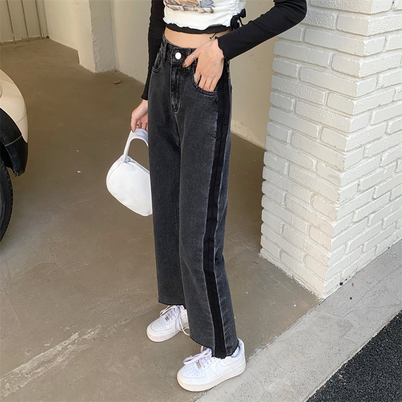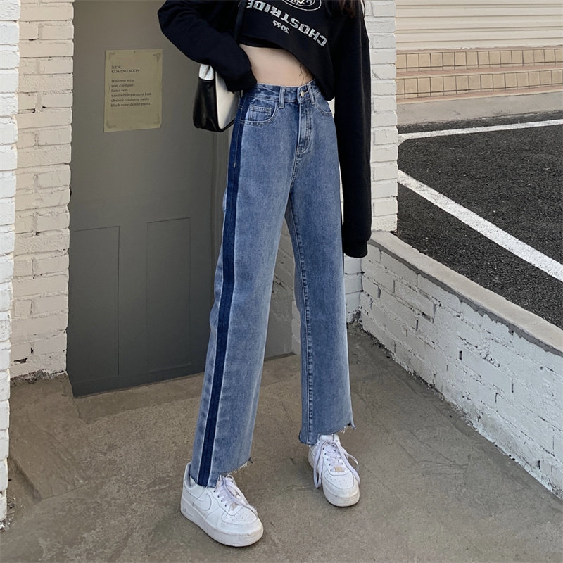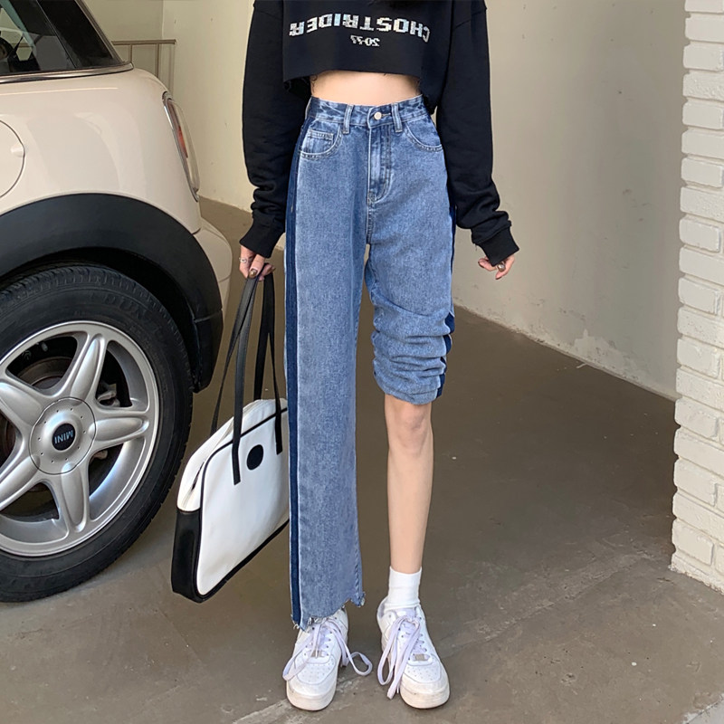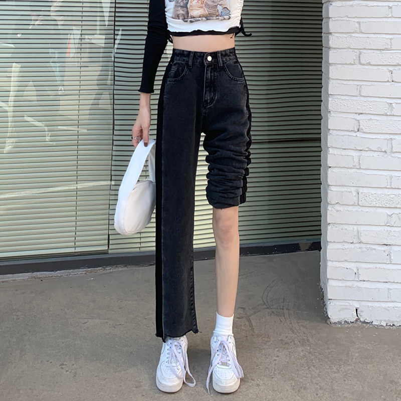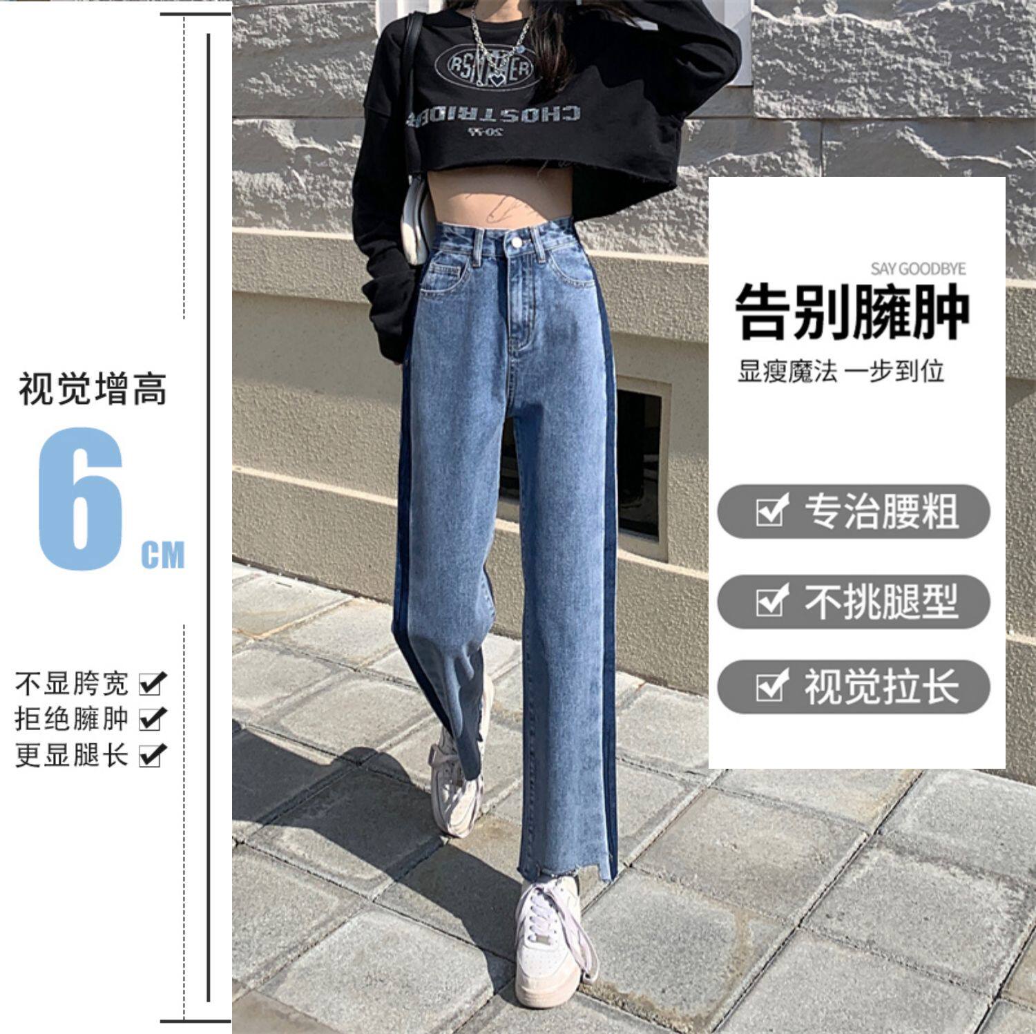 Осенние джинсы, штаны, коллекция 2023, большой размер, подходит для полных девушек, свободный прямой крой, высокая талия