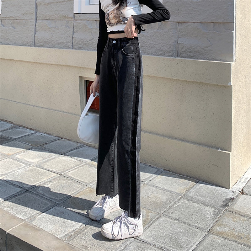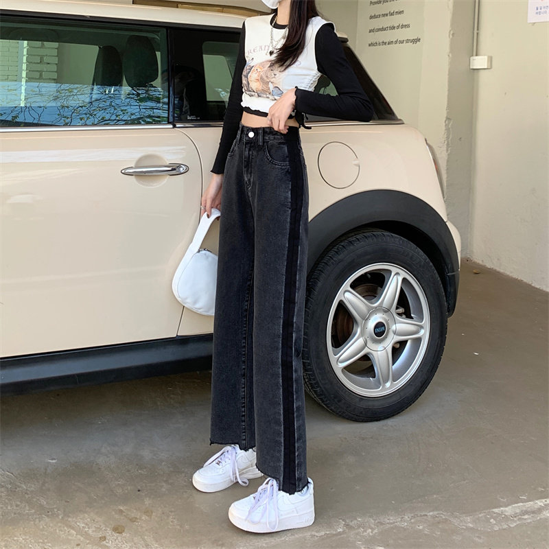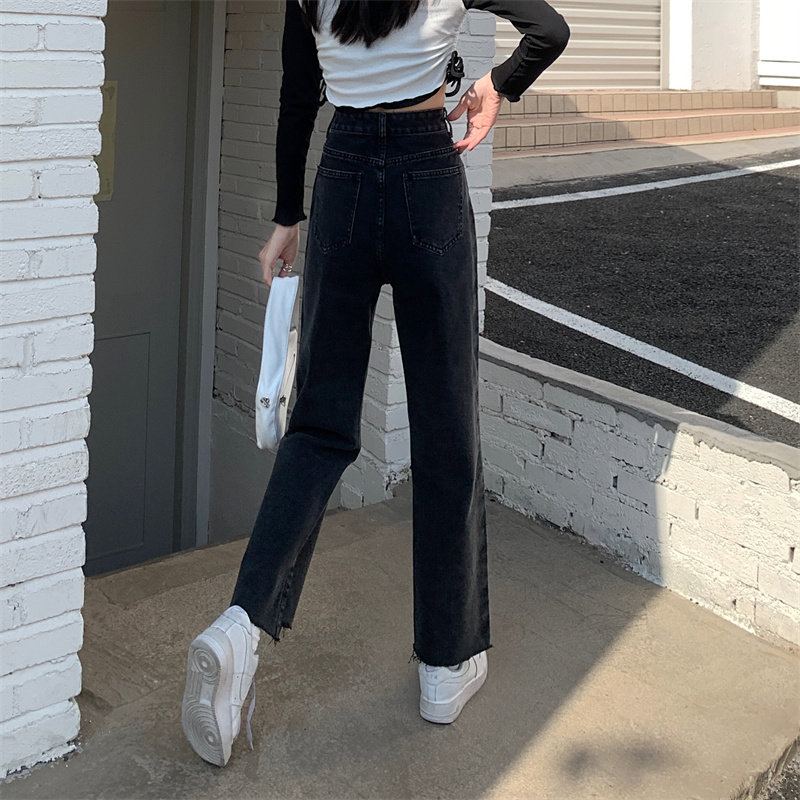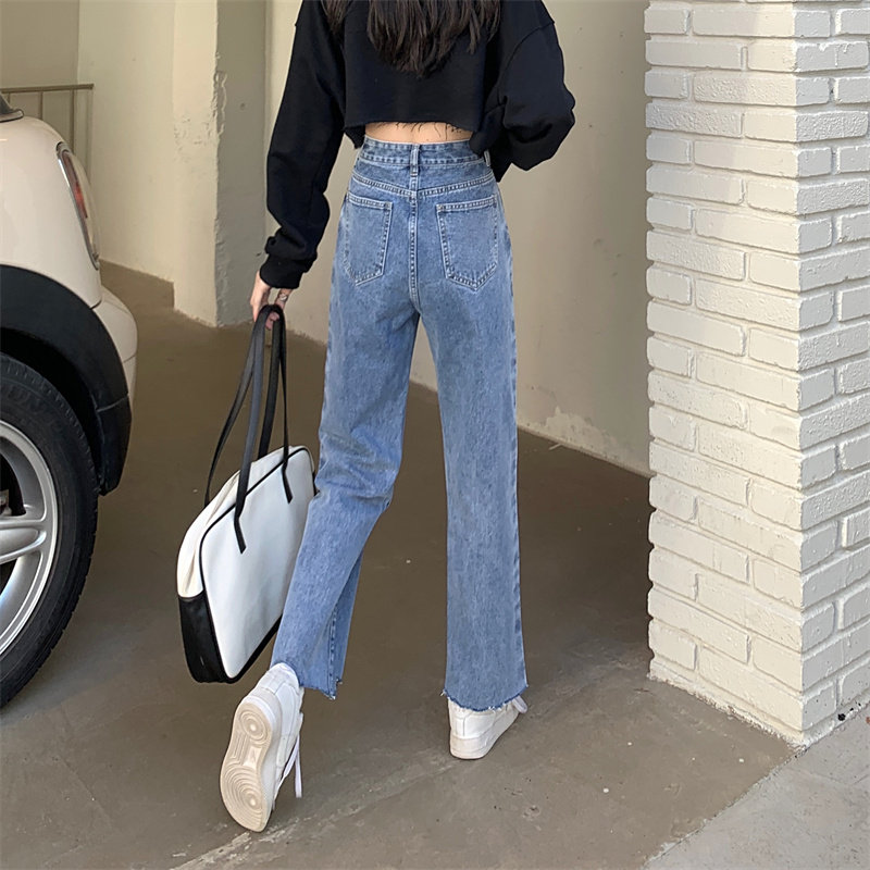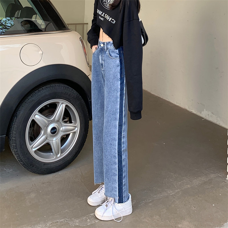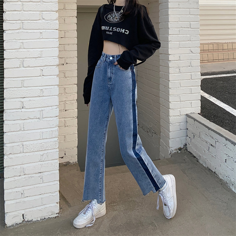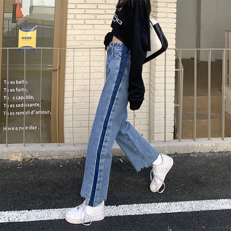 Осенние джинсы, штаны, коллекция 2023, большой размер, подходит для полных девушек, свободный прямой крой, высокая талия