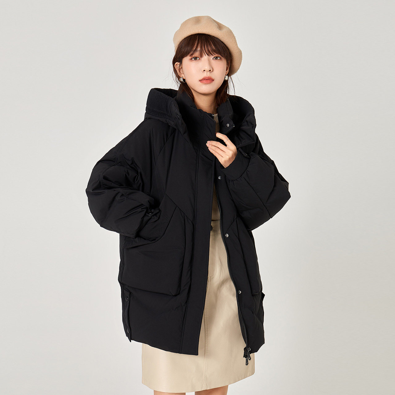 Демисезонный пуховик для отдыха с капюшоном, оверсайз, простой крой