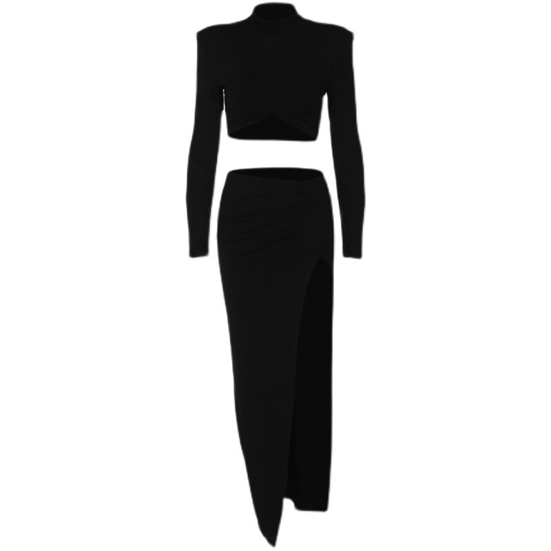 Весенний короткий сексуальный лонгслив для отдыха, длинная юбка, комплект, европейский стиль, коллекция 2023, высокая талия