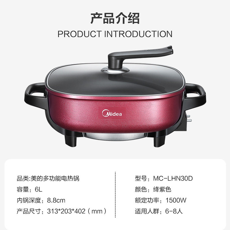 MIDEA MC-LHN30D ЭЛЕКТРИЧЕСКИЙ ГОРЯЧИЙ ГОРЯЧИЙ Многофункциональный многофункциональный 6-литровый электрический горшок Электрический горшок Корейский электрический кипящий горшок с жаркой