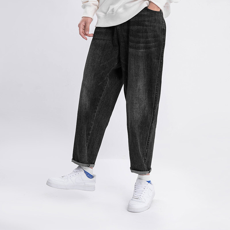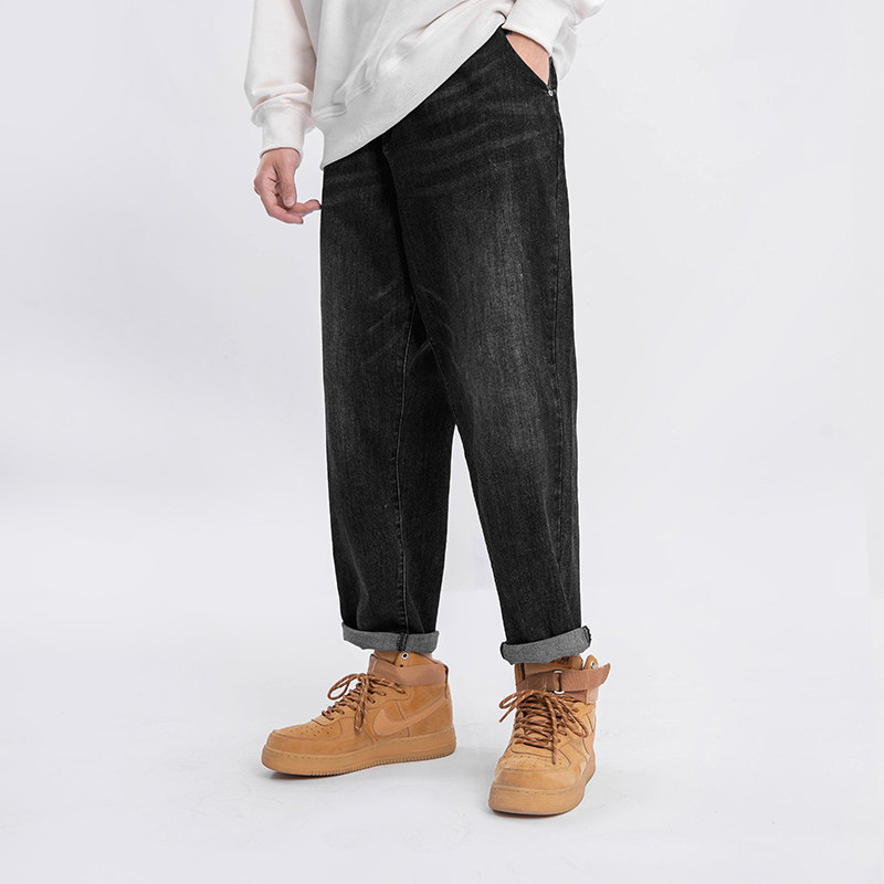 Осенние черные джинсы, большой размер, свободный прямой крой