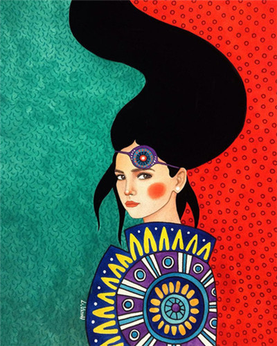 DIY Цифровой масляной живопись Собственная раскраска пакет в горошек Дот Рычные Черные волосы крутые девушки, расписанная