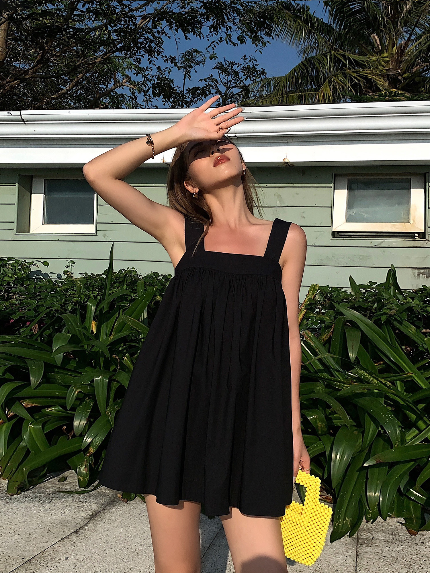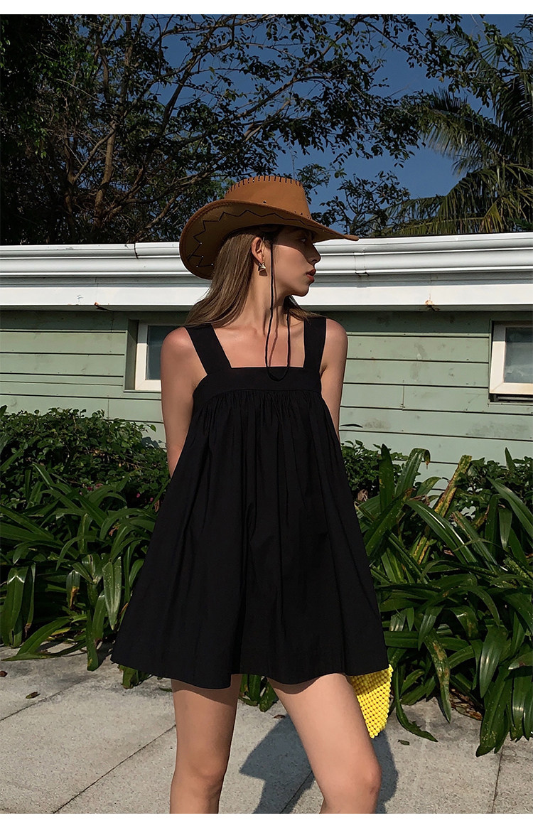 Черный топ без лямок, летнее платье, кукла, эффект подтяжки, оверсайз, свободный крой, А-силуэт