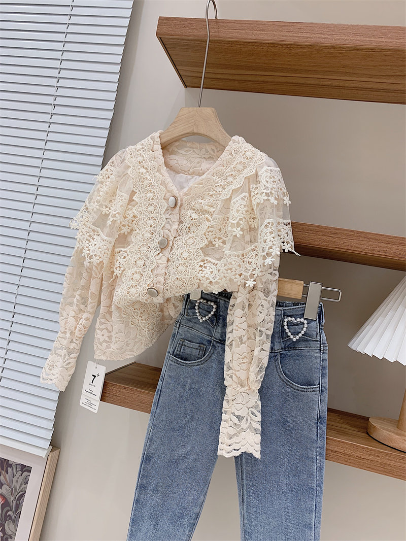 Женская кружевная рубашка, детская одежда, французский стиль, V-образный вырез