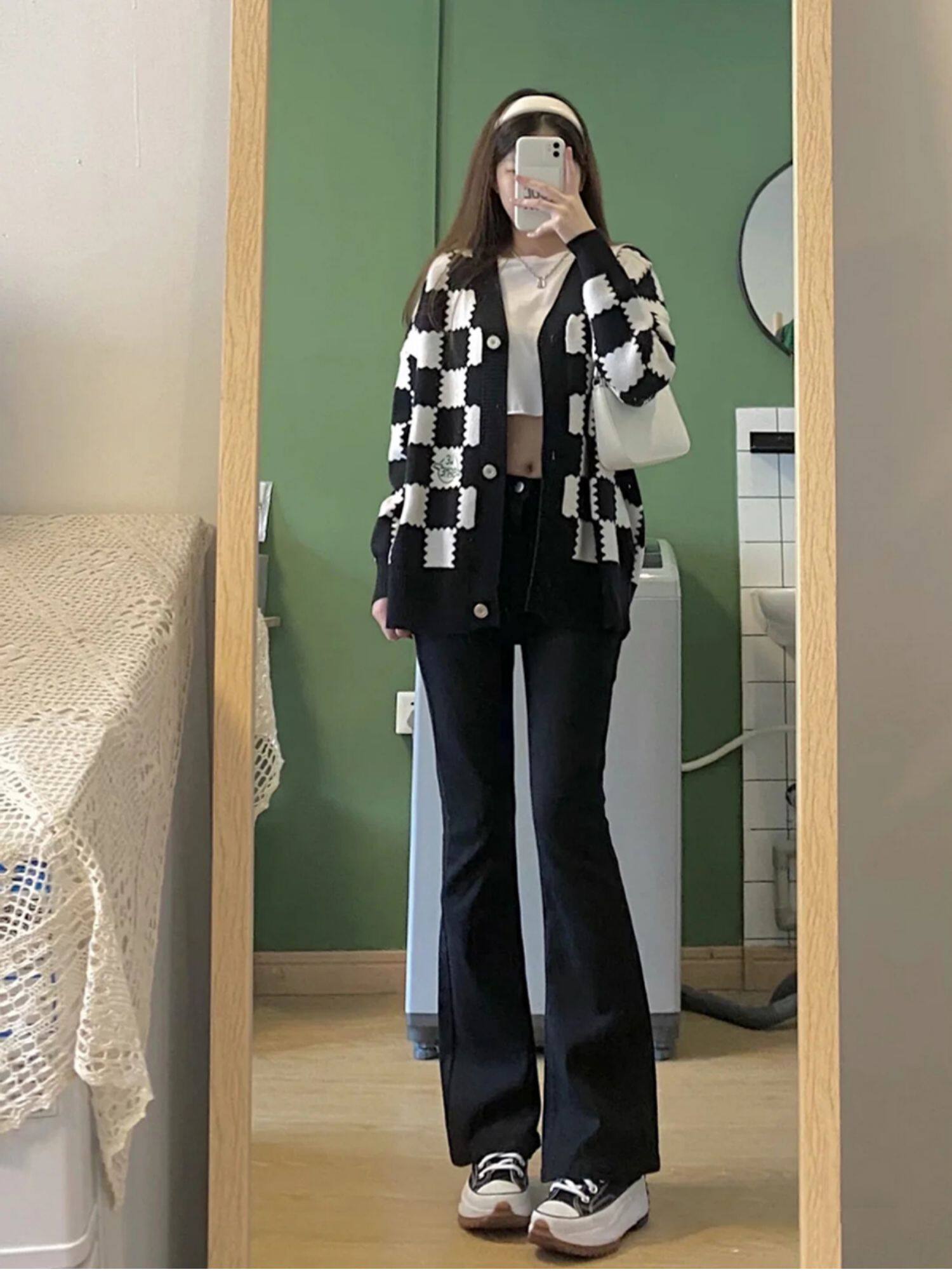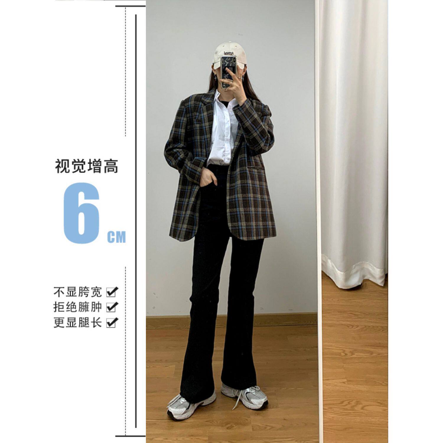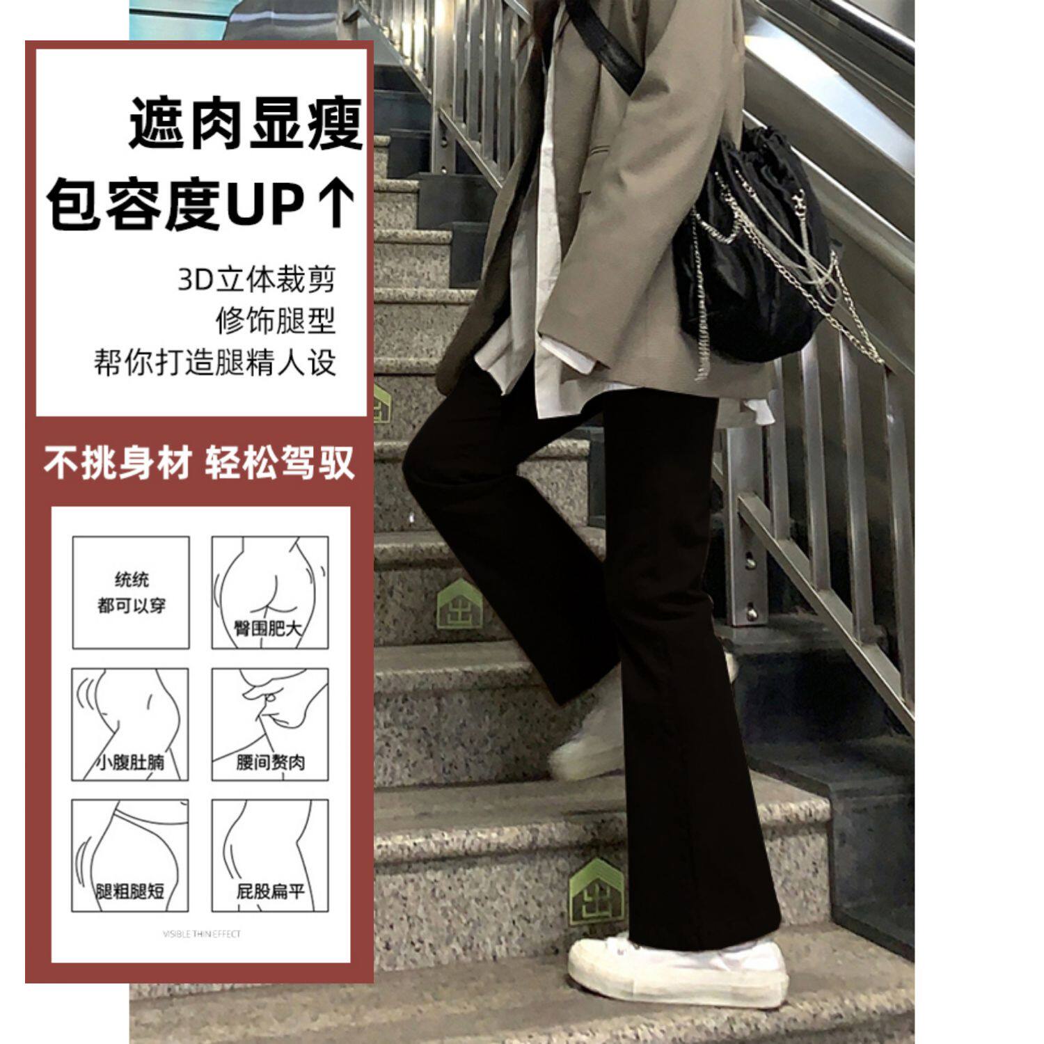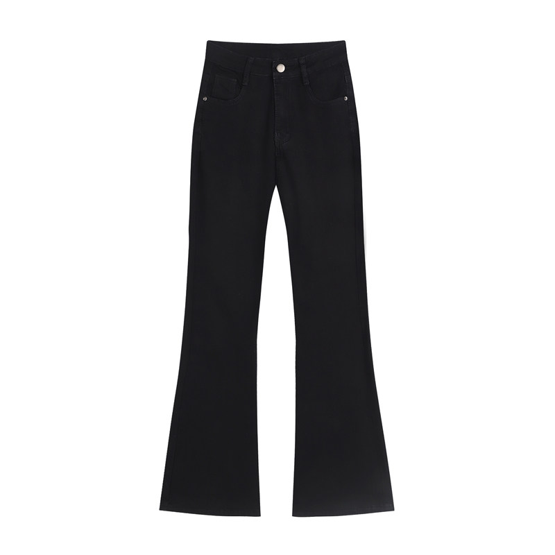 Джинсовые осенние штаны-клёш, приталенные универсальные штаны, большой размер, высокая талия, свободный прямой крой