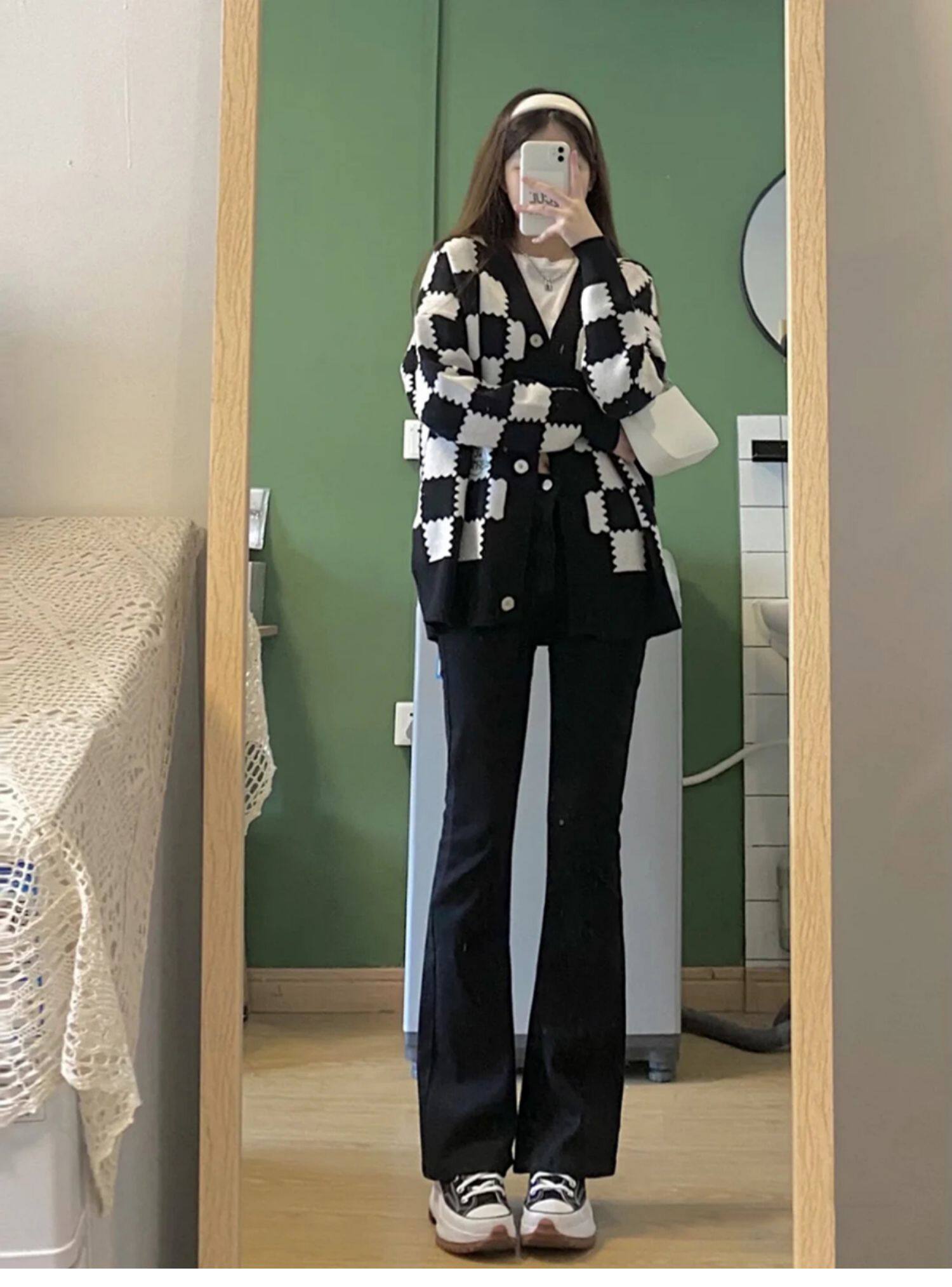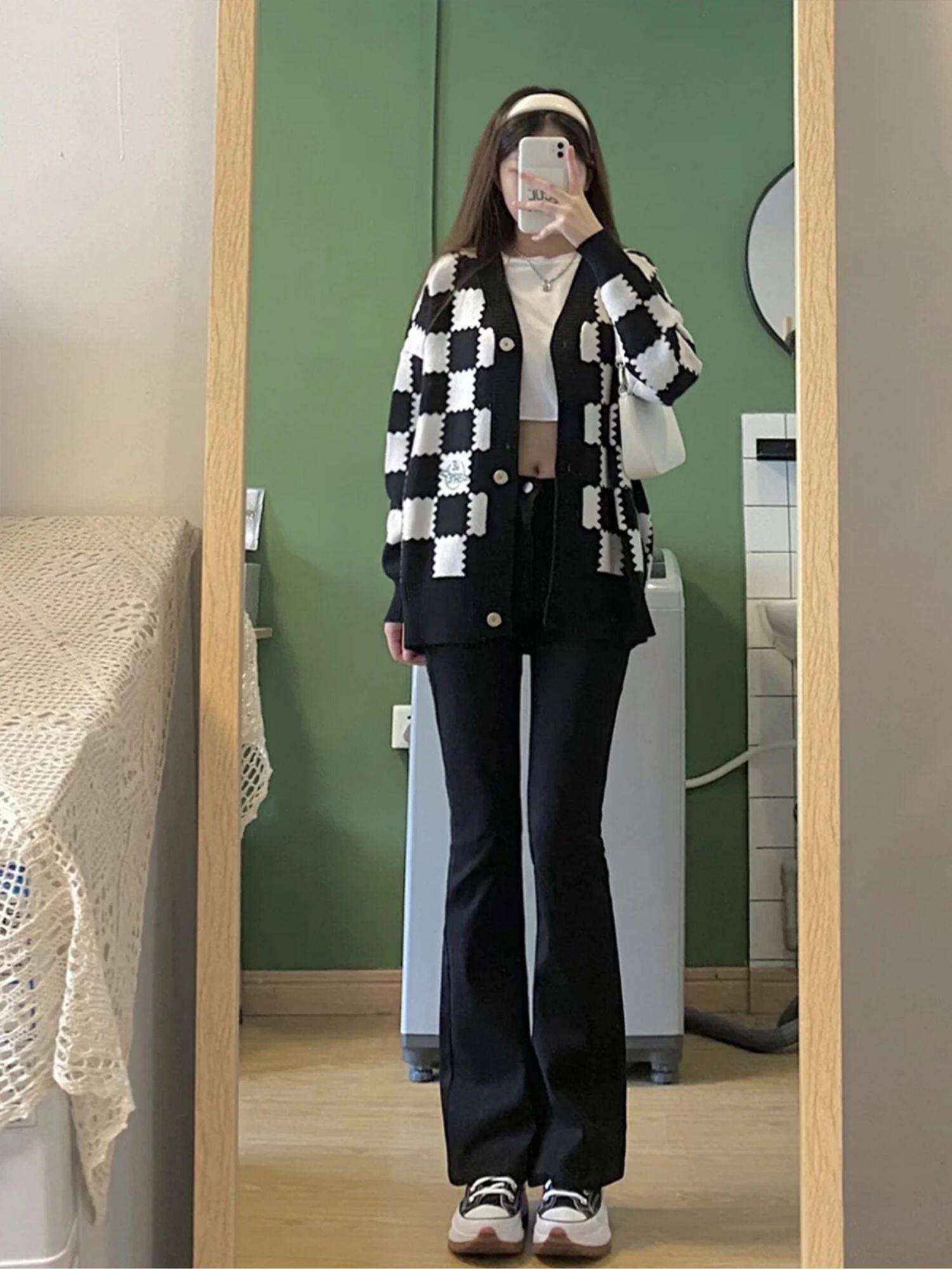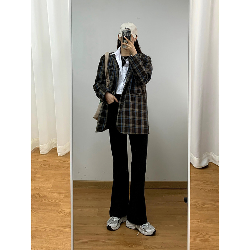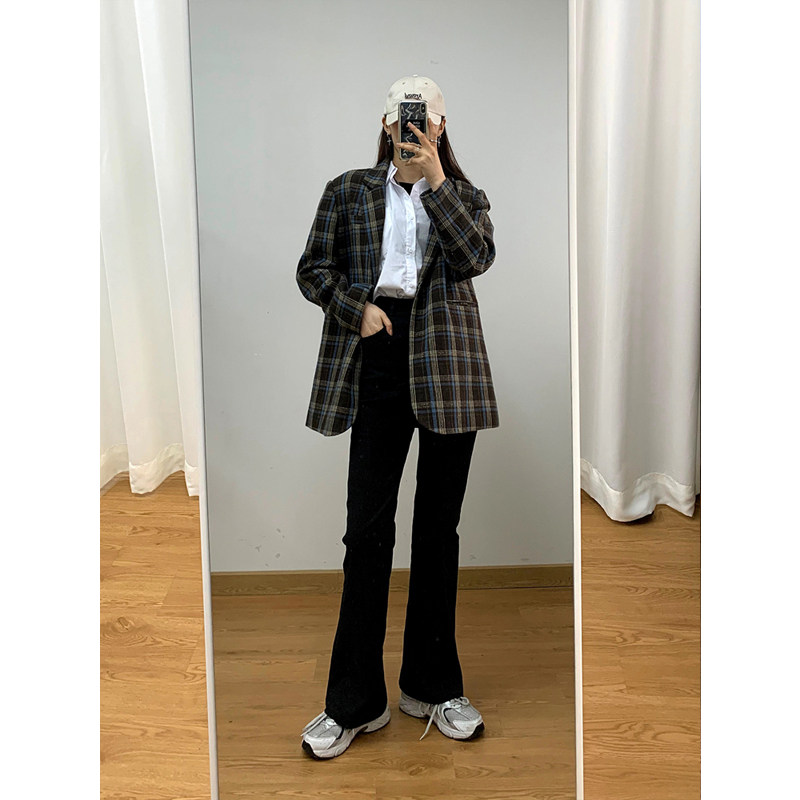 Джинсовые осенние штаны-клёш, приталенные универсальные штаны, большой размер, высокая талия, свободный прямой крой