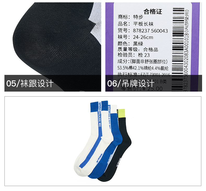 Xtep, весенние трендовые носки подходит для мужчин и женщин, длина миди