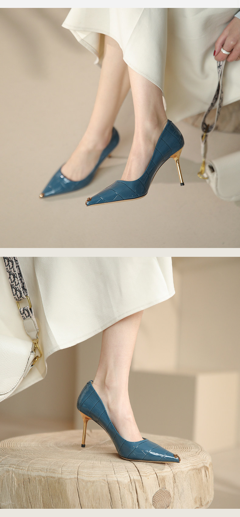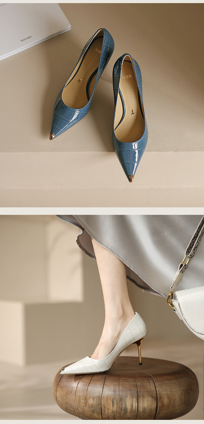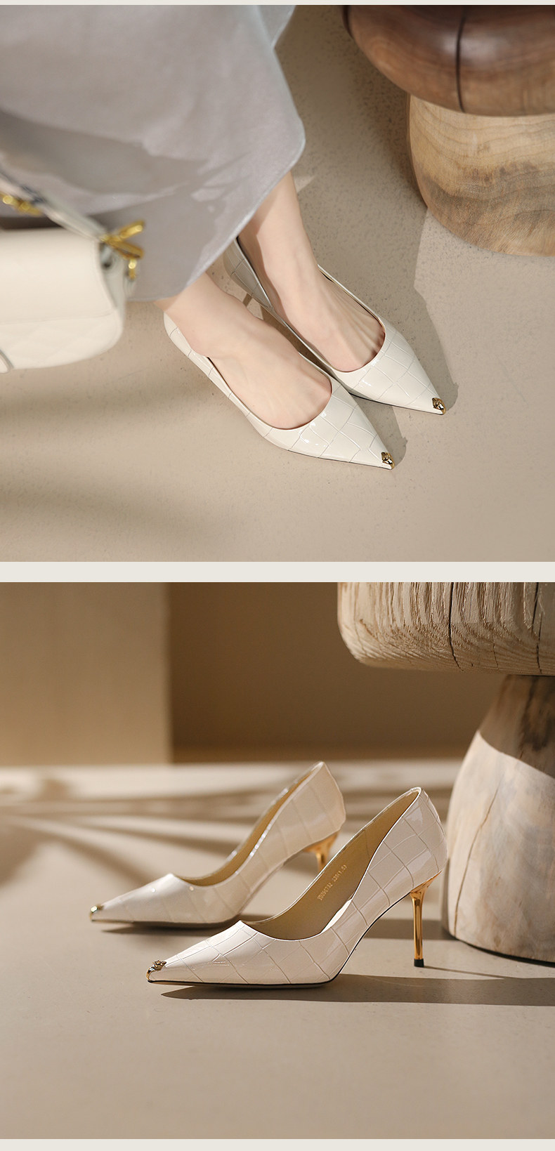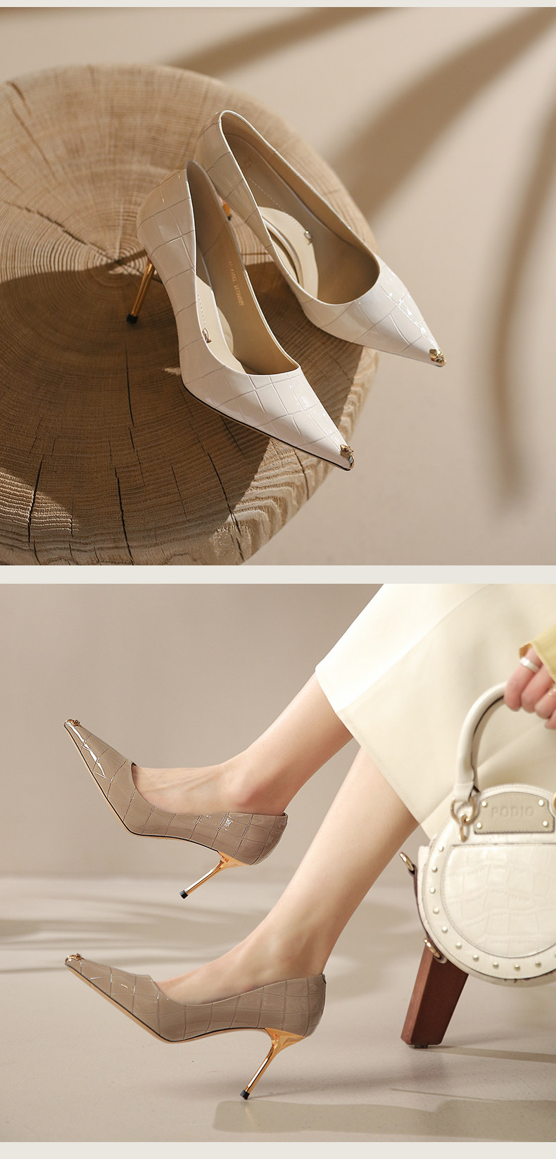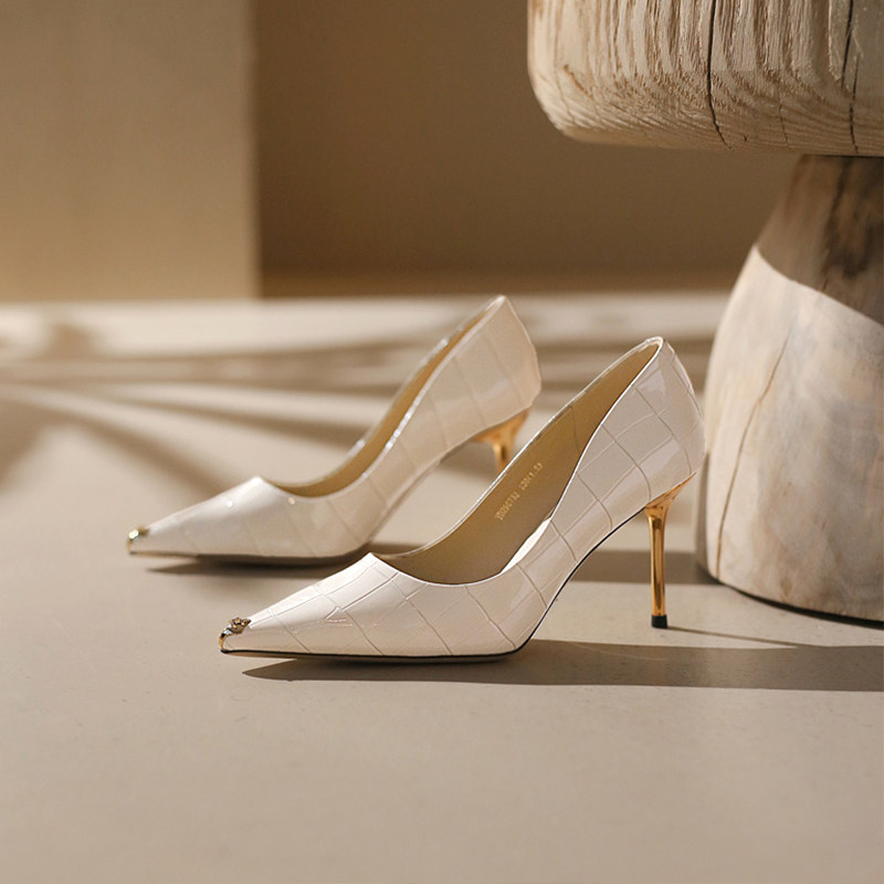一代佳人 Весенние белые туфли на высоком каблуке с заостренным носом, французский стиль