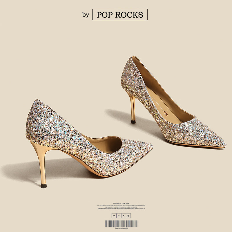 一代佳人 Весенние серебряные туфли на высоком каблуке, золотые свадебные туфли, для подружки невесты