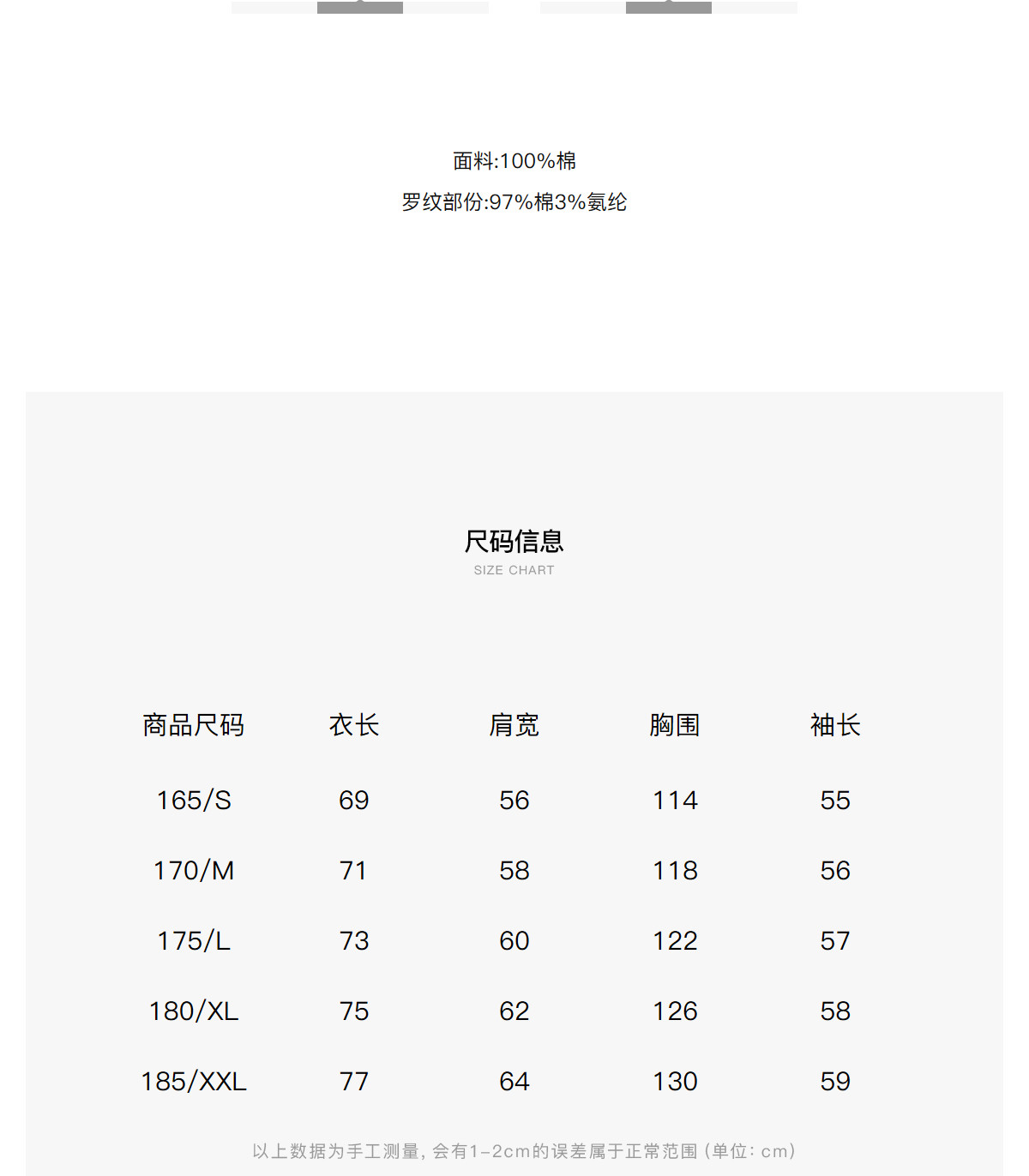 - = 185/XXL 175/L 180/XL