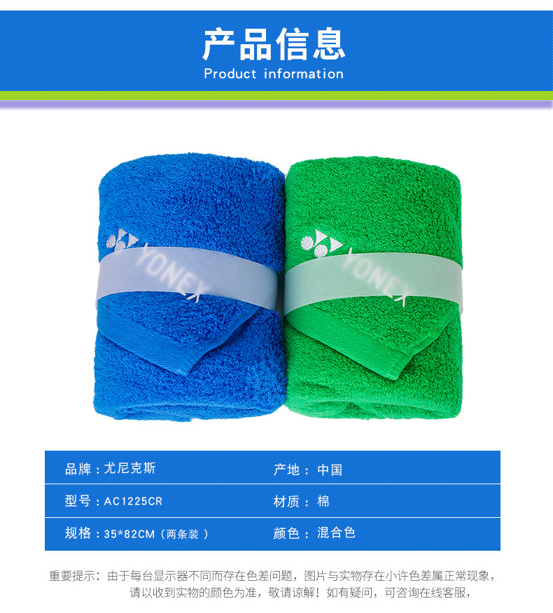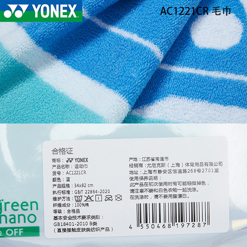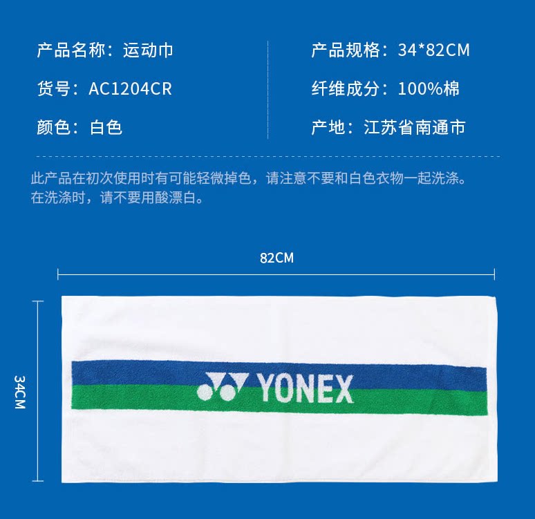 [YONEX尤尼克斯羽毛球毛巾yy运动毛巾健身房擦汗巾跑步吸汗AC1204]